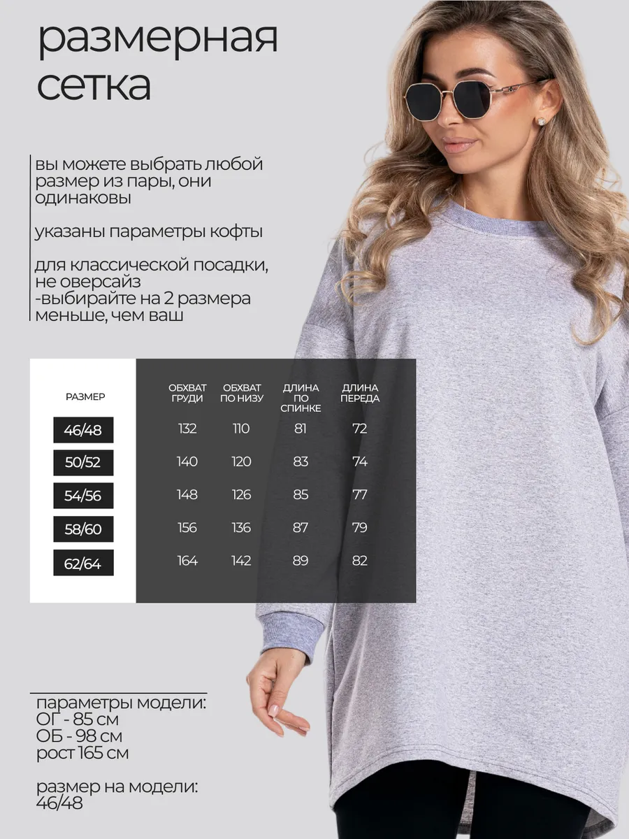 Свободный крой в стиле оверсайз обеспечивает легкость движений и комфорт в течение всего дня. Такая оверсайз кофта туника станет незаменимой частью гардероба, её можно носить с джинсами, брюками или леггинсами. Подойдет и как офисная для работы, и для дома . в качестве теплой уютной домашней одежды.