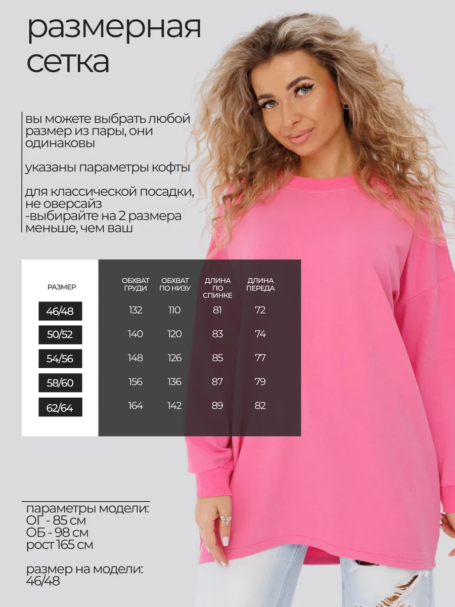 Свободный крой в стиле оверсайз обеспечивает легкость движений и комфорт в течение всего дня. Такая оверсайз кофта туника станет незаменимой частью гардероба, её можно носить с джинсами, брюками или леггинсами. Подойдет и как офисная для работы, и для дома . в качестве теплой уютной домашней одежды.