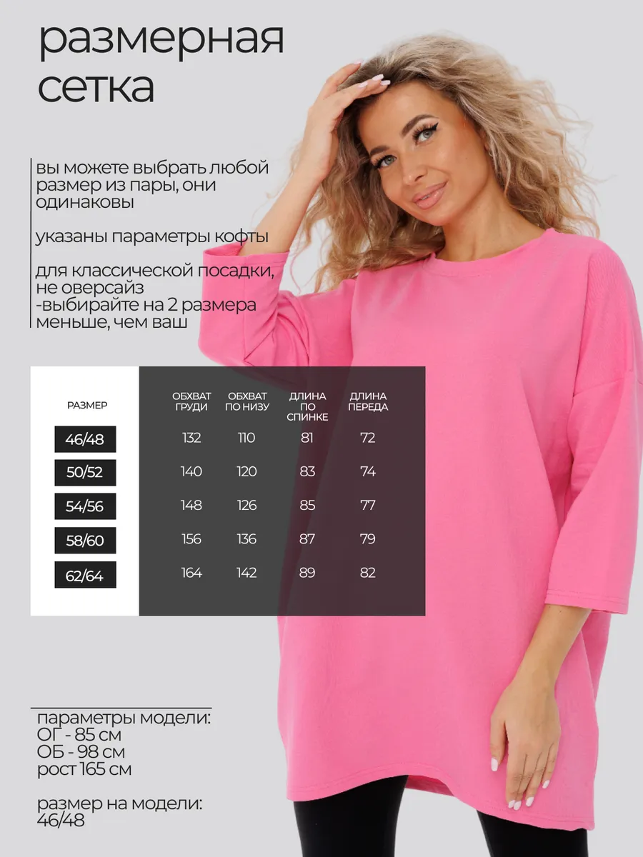 Свободный крой в стиле оверсайз обеспечивает легкость движений и комфорт в течение всего дня. Такая оверсайз кофта туника станет незаменимой частью гардероба, её можно носить с джинсами, брюками или леггинсами или лосинами. Подойдет и как офисная для работы, и для дома . В качестве теплой уютной домашней одежды.