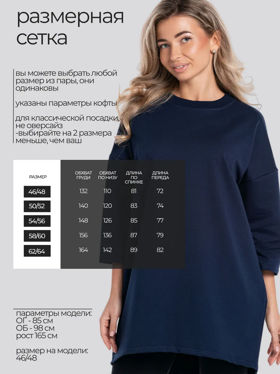 Свободный крой в стиле оверсайз обеспечивает легкость движений и комфорт в течение всего дня. Такая оверсайз кофта туника станет незаменимой частью гардероба, её можно носить с джинсами, брюками или леггинсами или лосинами. Подойдет и как офисная для работы, и для дома . В качестве теплой уютной домашней одежды.