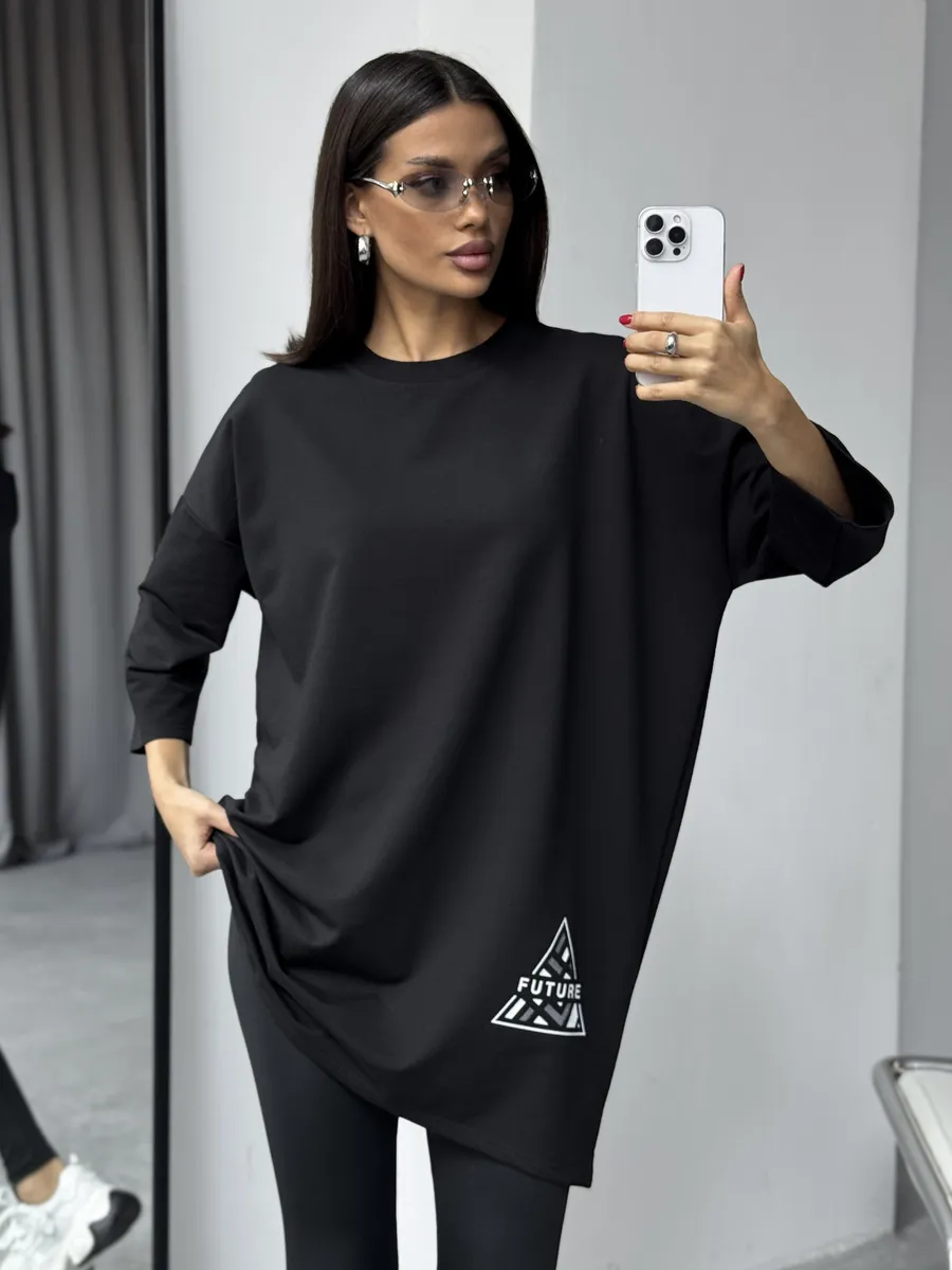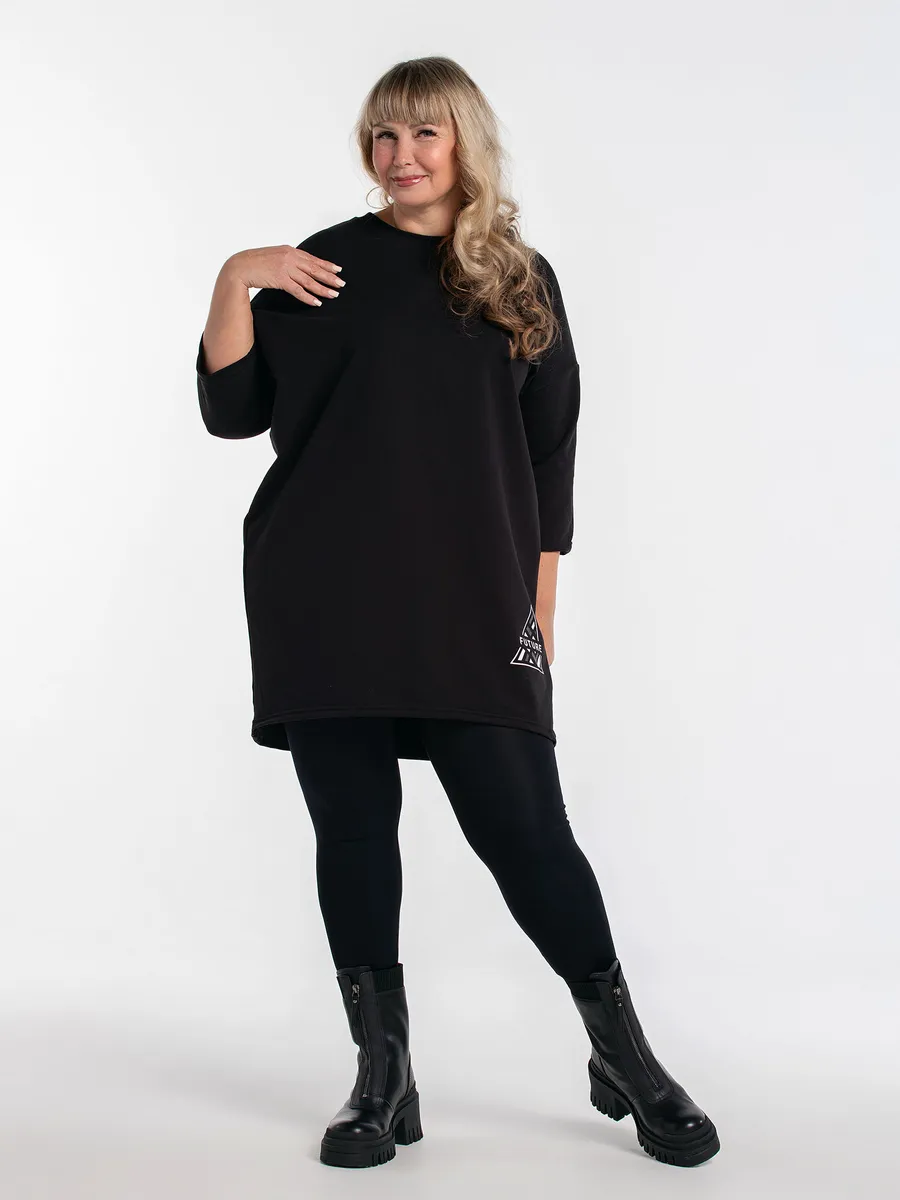 Универсальная модель создаст удобный и современный образ. Свободный крой и асимметричная длина скрывают недостатки и подчеркивают достоинства фигуры.