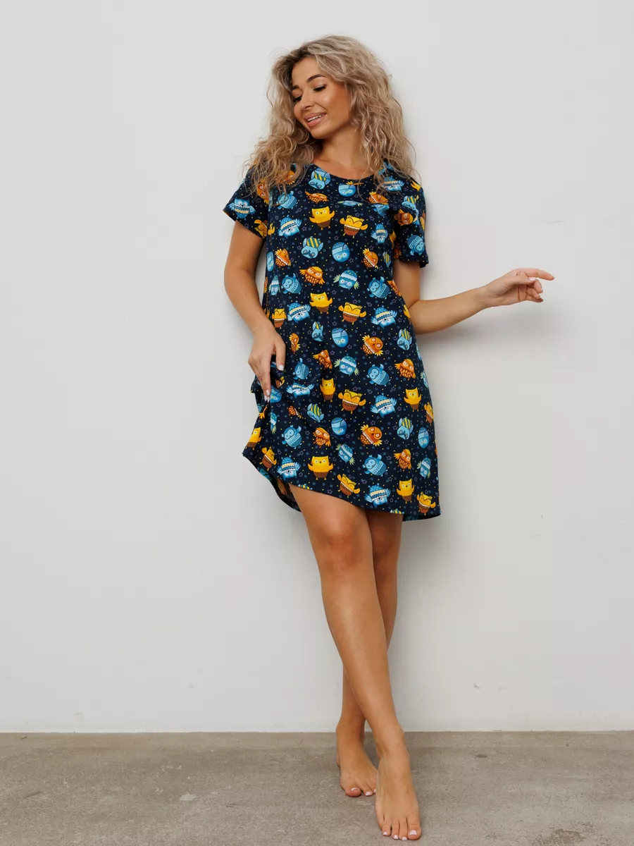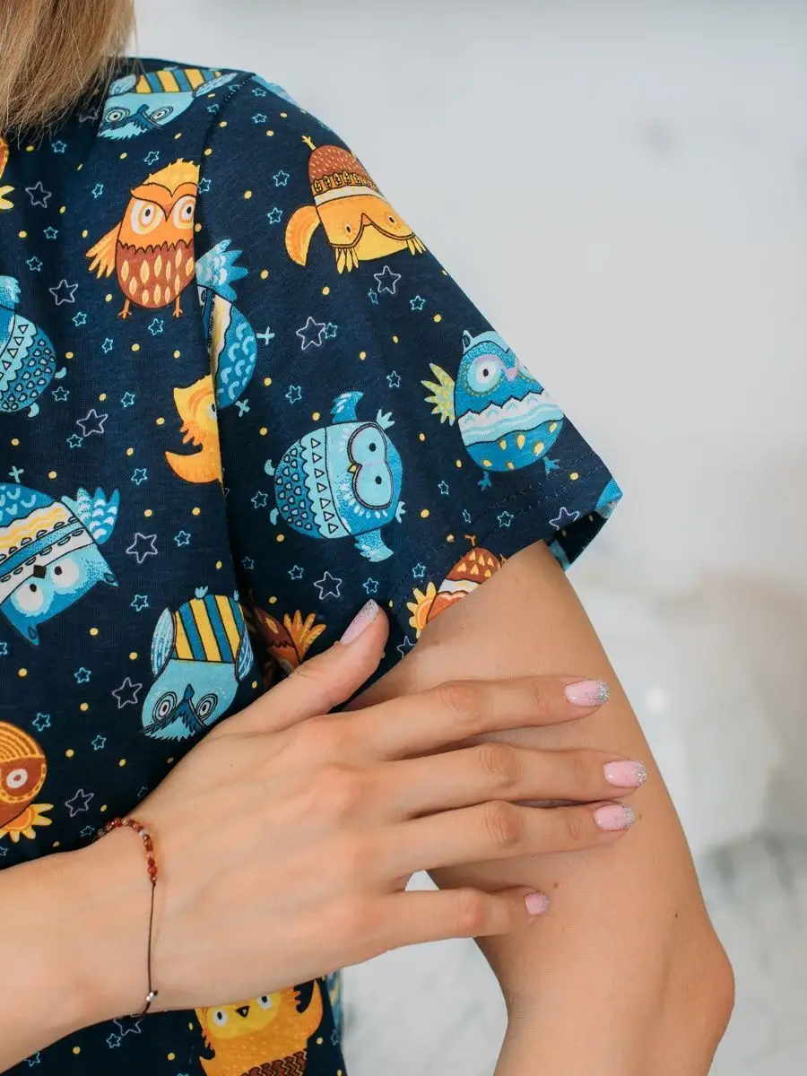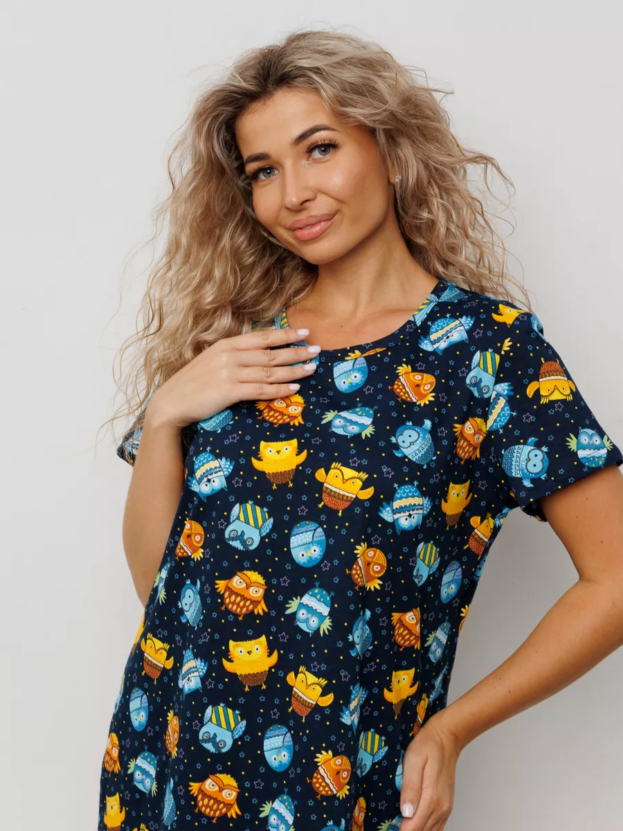 В фотогалерее вы можете ознакомиться с размерной сеткой и рекомендациями по уходу. Женская ночная сорочка футболка с коротким рукавом - непременная часть домашнего гардероба. Та самая домашняя одежда, которая подходит для сна, для отдыха и просто для дома, как домашнее платье. Сон является важнейшей частью нашей жизни и одежда для сна из трикотажа должна быть удобной и мягкой, не натирать кожу, обеспечивать вентилируемость и гигроскопичность. Именно поэтому длинная трикотажная ночная сорочка изготовлена из натурального хлопка. Хлопковая ночнушка не красится, мягкая и приятная на ощупь. Свободный покрой не давит , что немаловажно если эта ночная рубашка используется для полных или для беременных, для роддома, для родов. В наличии имеется ночное белье и больших размеров, прямой свободный покрой подойдет на любой тип фигуры. Более десятка тысяч женщин уже по достоинству оценили наш ивановский трикотаж!