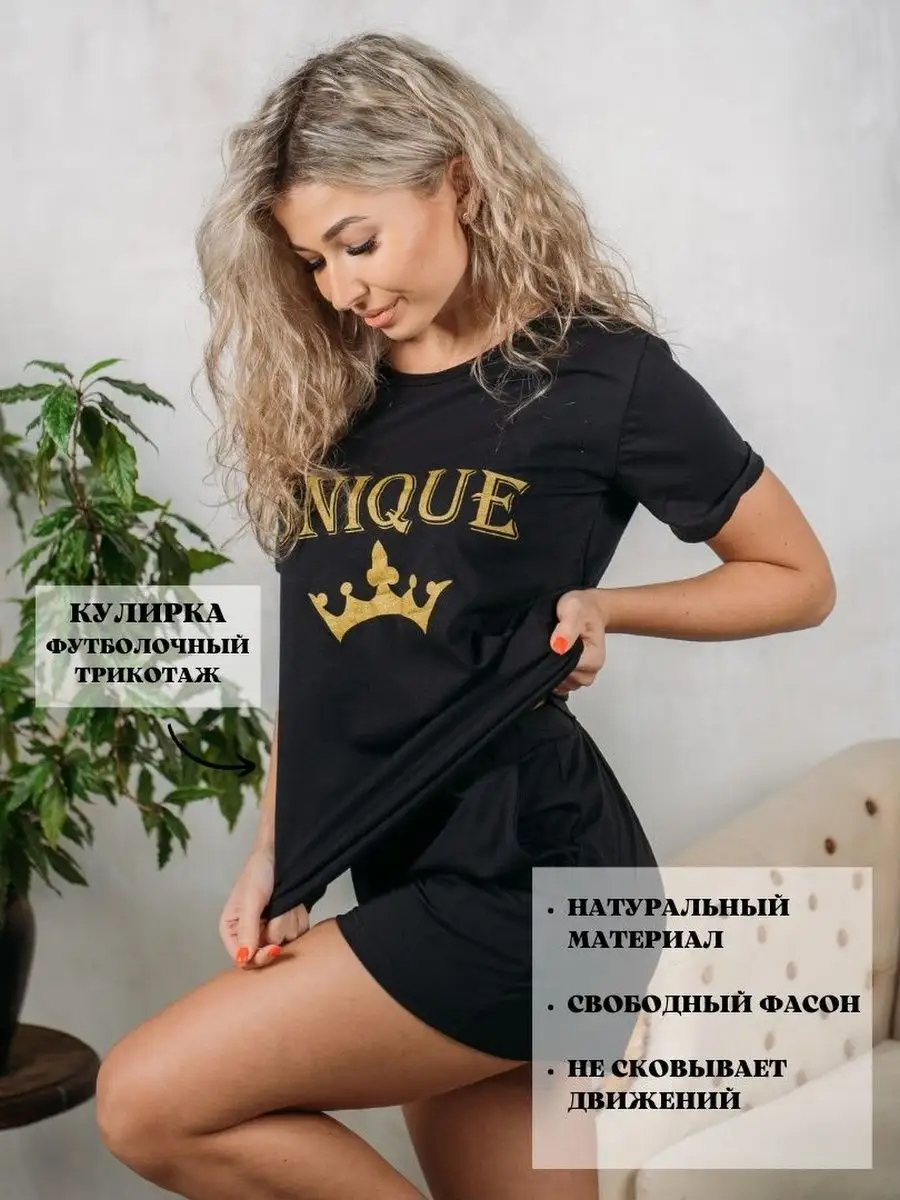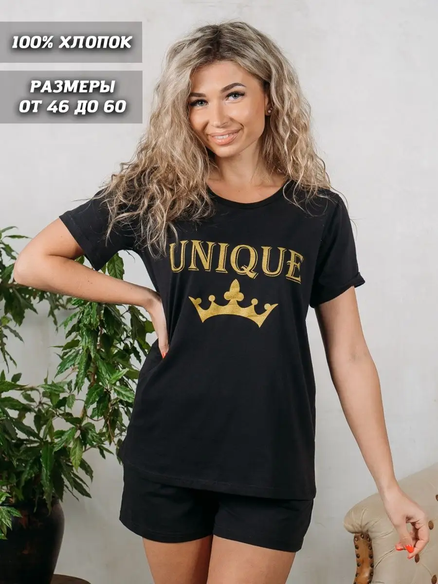 Женская хлопковая домашняя пижама с шортами - непременная часть домашнего гардероба. Та самая домашняя одежда, которая подходит и для сна,и для отдыха. Сон является важнейшей частью нашей жизни и одежда для сна из трикотажа должна быть удобной и мягкой, не натирать кожу, обеспечивать вентилируемость и гигроскопичность. Поэтому пижама изготовлена из натурального 100% хлопка. Домашний костюм из хлопка не красится, мягкий и приятный на ощупь. Комплект состоит из футболки свободного кроя, чуть оверсайз , и коротких шорт на мягкой резинке. Эта пижама подарит ощущение уюта своей обладательнице. Для большего удобства, домашний костюм из хлопка снабжен двумя карманами и резинкой в брюках. Свободный покрой не давит, швы не врезаются, что немаловажно если этот пижамный комплект используется для полных или для беременных, для роддома, для родов. В наличии имеется ночное белье больших размеров, прямой свободный покрой подойдет на любой тип фигуры. Более десятка тысяч женщин уже по достоинству оценили наш ивановский трикотаж!