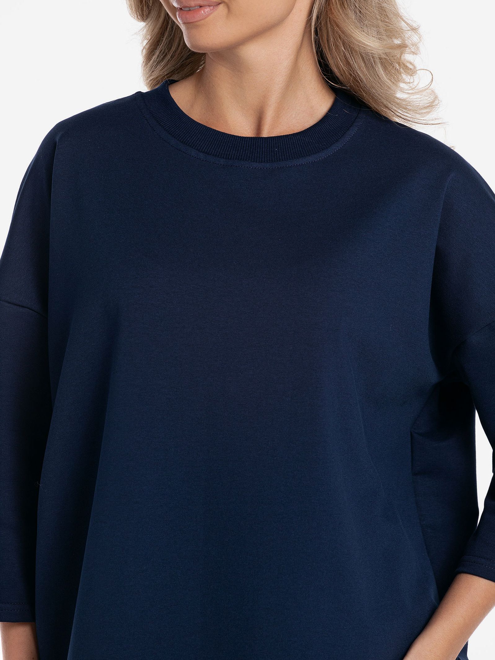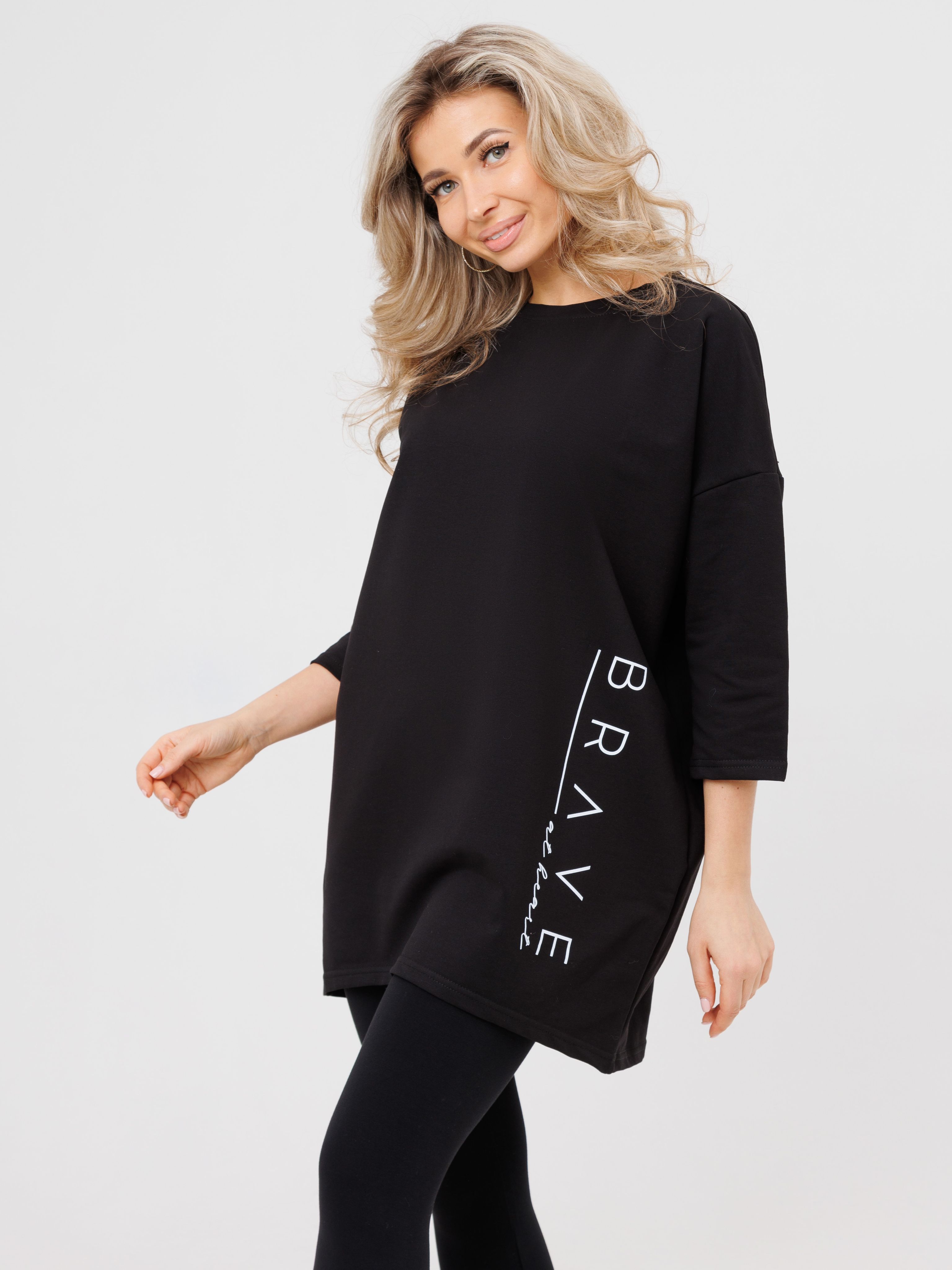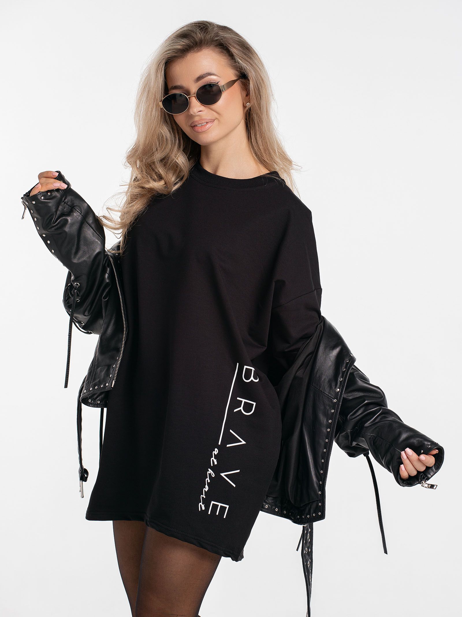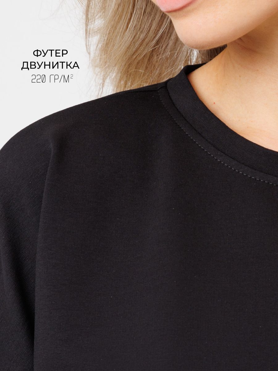 "body": "Чтобы подобрать посадку как на модели выбирайте свитшот с параметрами \nна 30-35 см больше своего обхвата по груди. Длина разрезов у бедра около 18 см."
