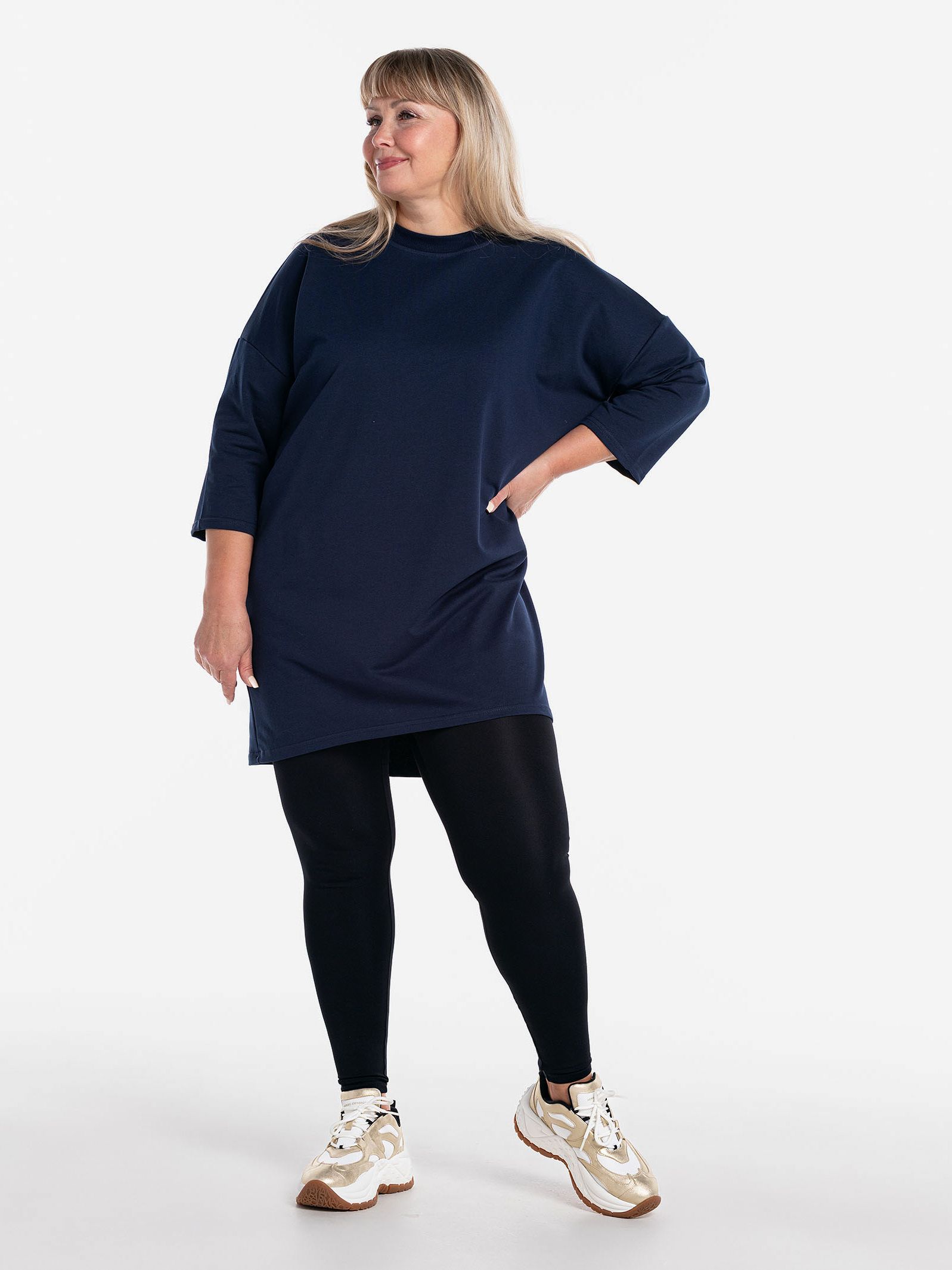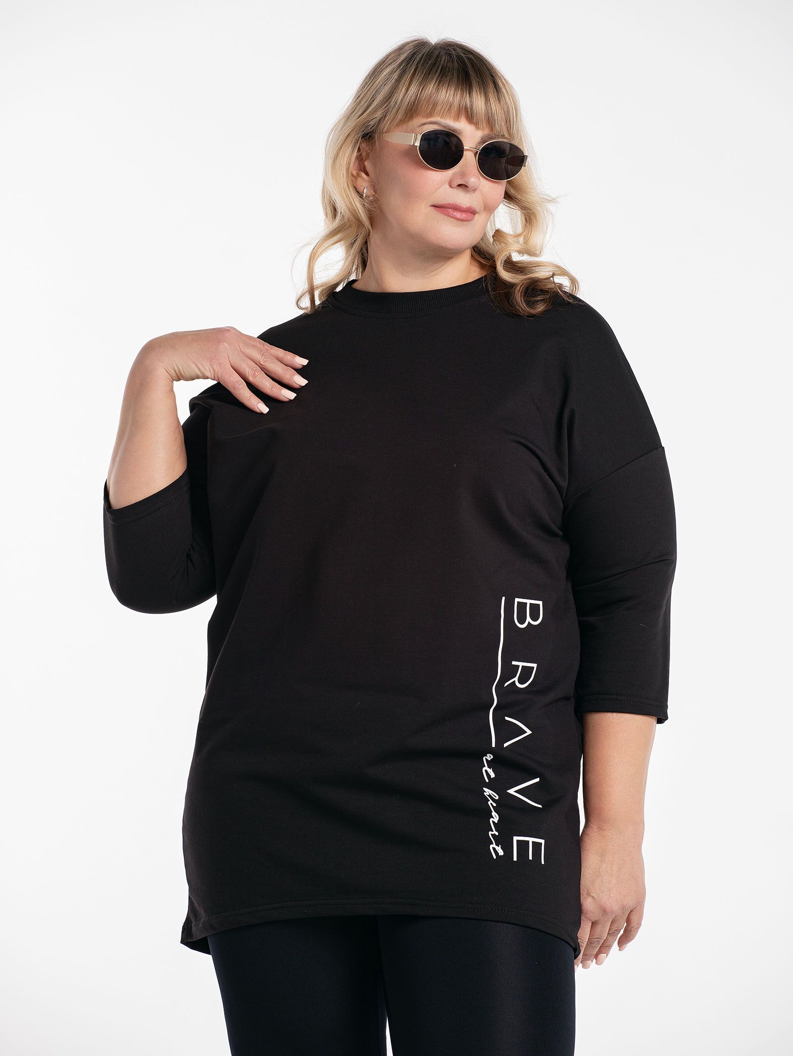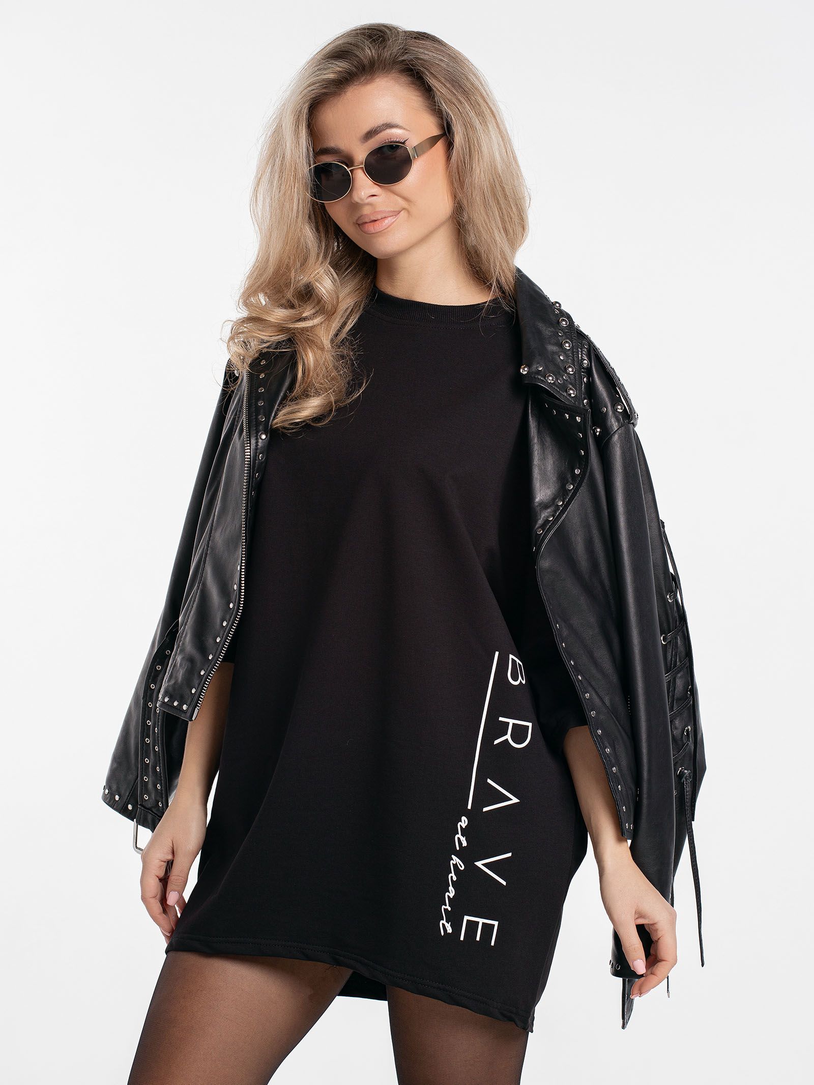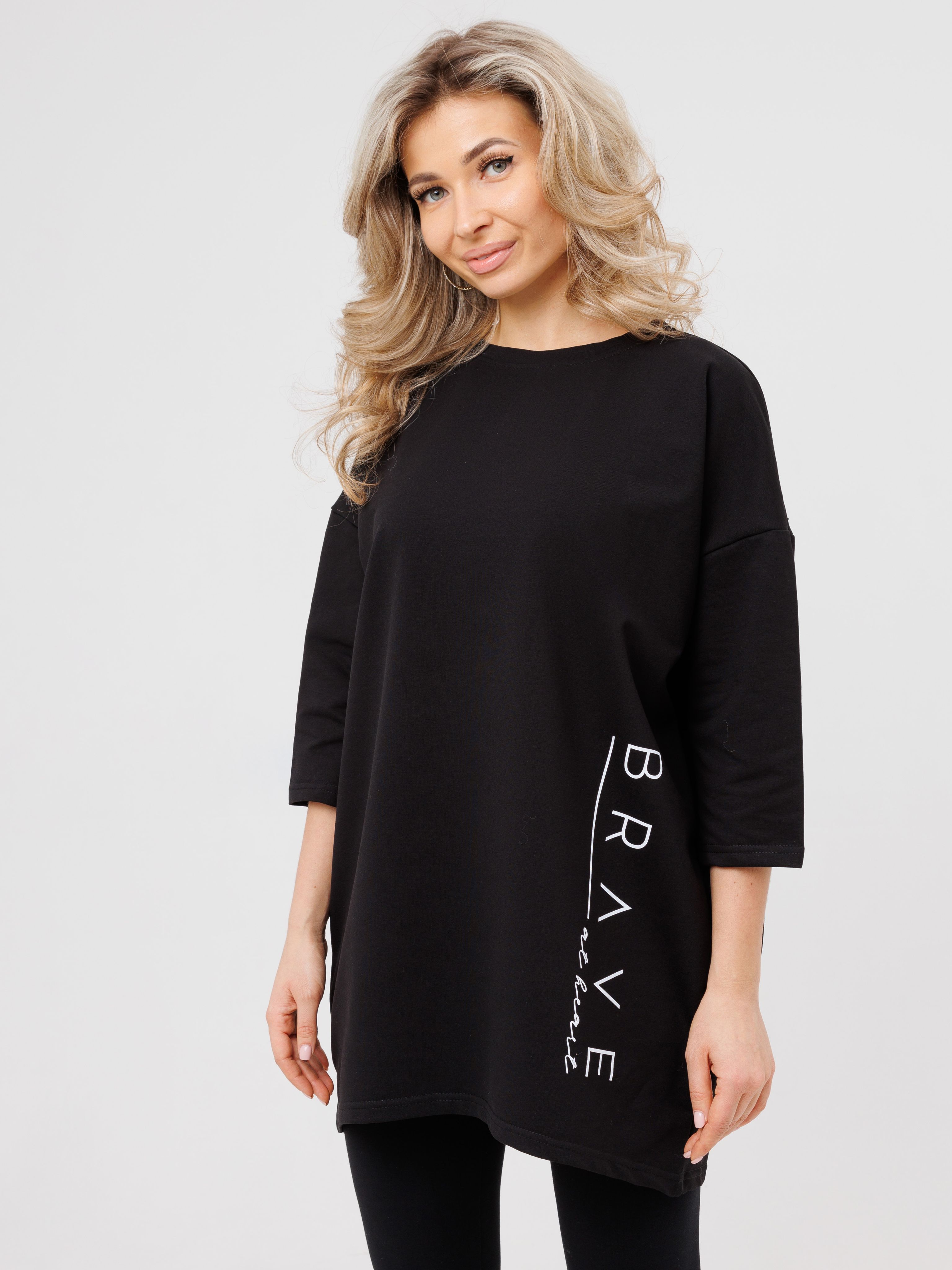 "body": "Чтобы подобрать посадку как на модели выбирайте свитшот с параметрами \nна 30-35 см больше своего обхвата по груди. Длина разрезов у бедра около 18 см."