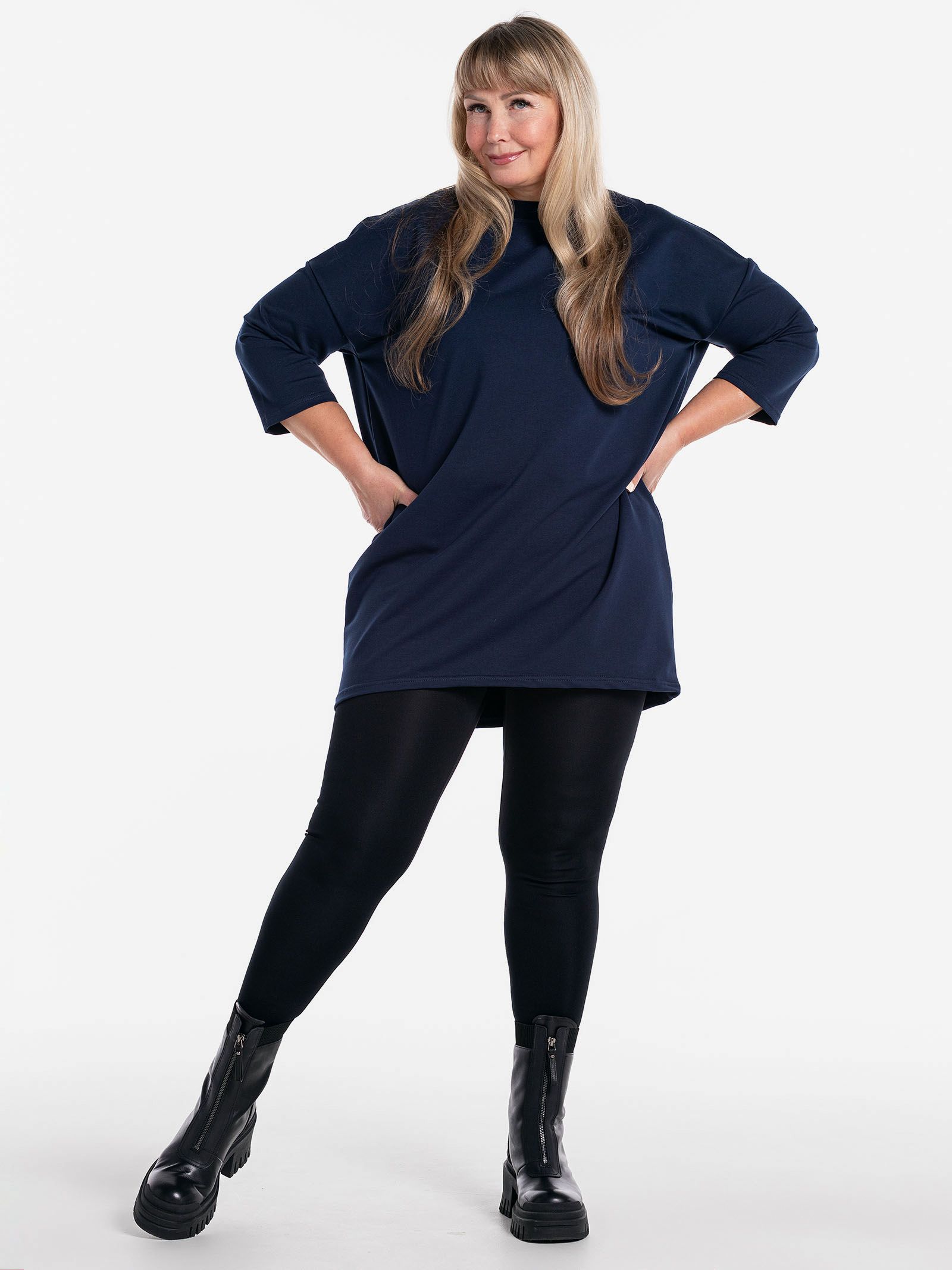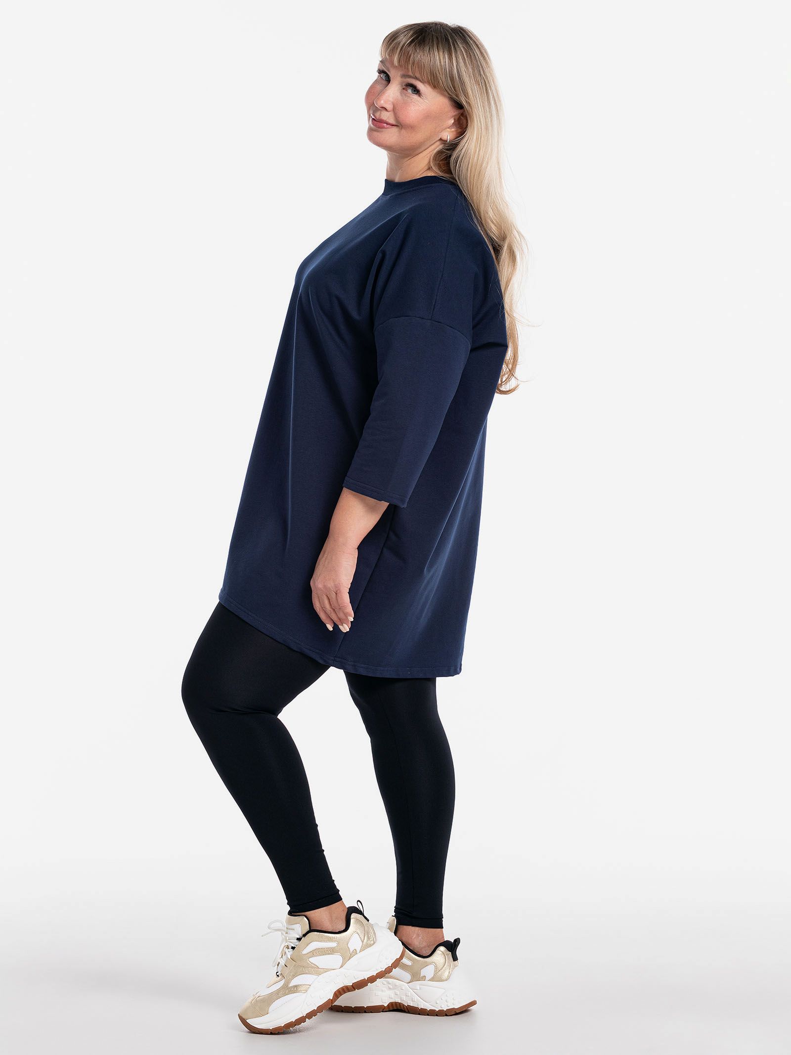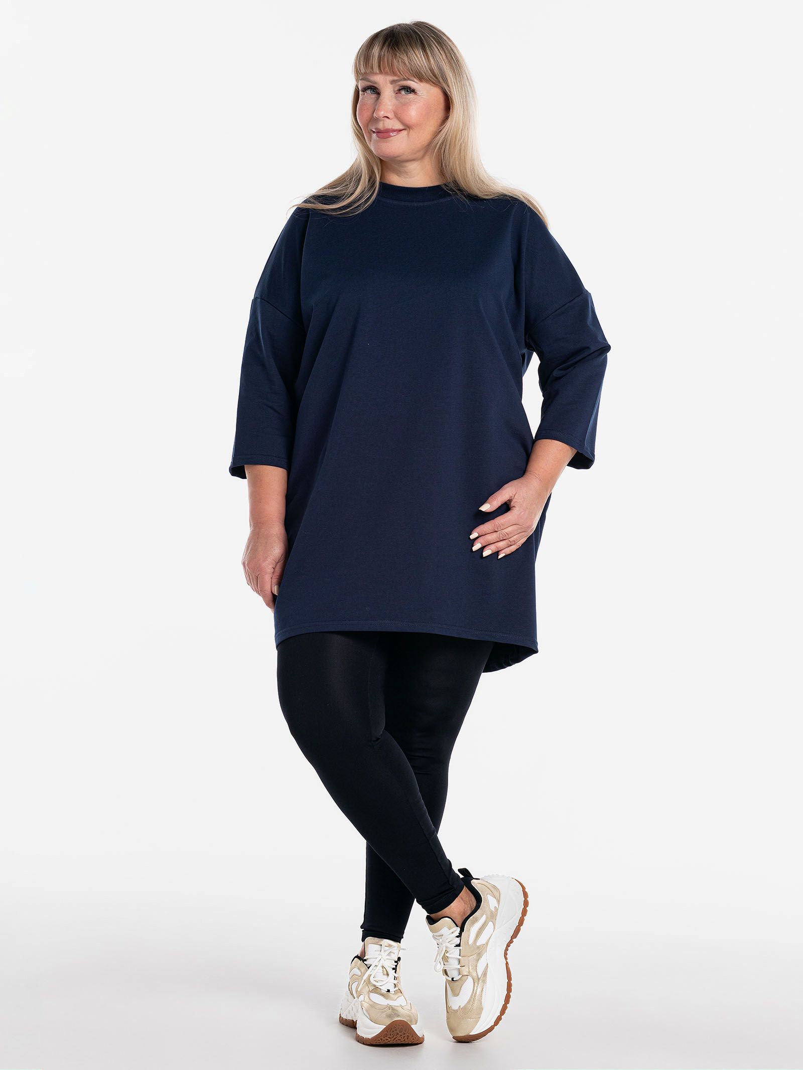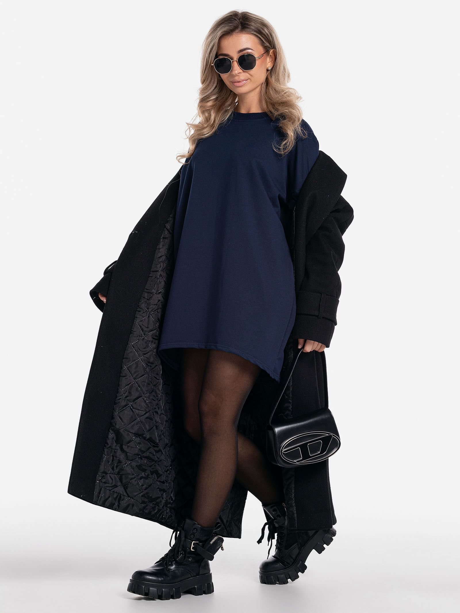 "body": "Чтобы подобрать посадку как на модели выбирайте свитшот с параметрами \nна 30-35 см больше своего обхвата по груди. Длина разрезов у бедра около 18 см."