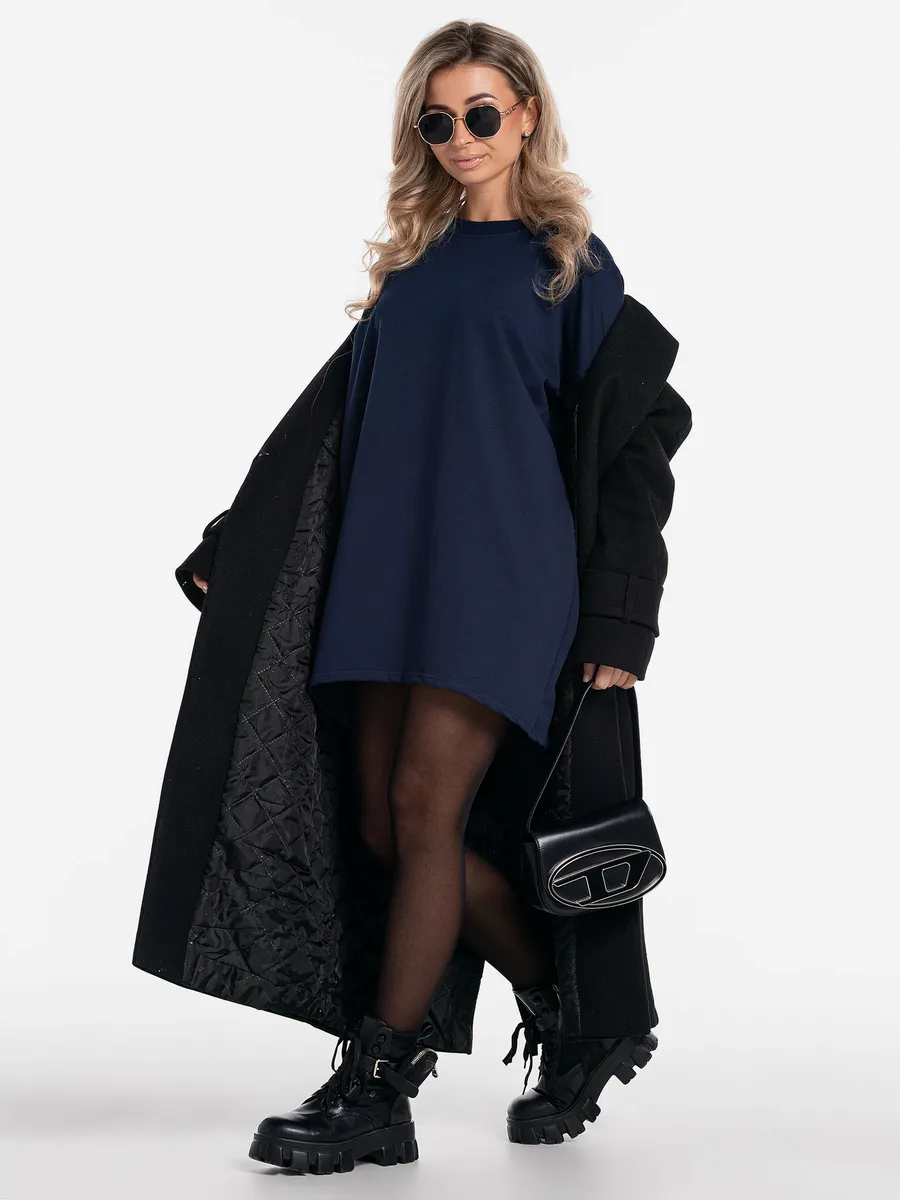 Представляем вам стильное и комфортное теплое платье-тунику из футера двунитки без начеса, которое станет незаменимым элементом вашего гардероба! Особенно для девушек низкого роста. Его свободный покрой оверсайз идеально подходит для тех, кто ценит удобство и свободу движений. Мягкий хб трикотажный материал свободно садится на фигуру, создавая ощущение комфорта в течение всего дня. Черный цвет - всегда актуальный и элегантный выбор, который легко сочетается с любыми аксессуарами. Это платье туника станет отличным вариантом как для повседневной носки, так и для более нарядных выходов. Его можно носить в качестве удлиненной кофты с легинсами, так и с плотными колготками, создавая стильные образы в спортивном или более женственном стиле. Благодаря своей универсальности и наличию больших размеров плюссайз, оно подойдет как для полных женщин, так и для беременных, обеспечивая максимальный комфорт в любой ситуации. Осенняя прохлада или зимний холод в демисезон не страшны, ведь это платье-туника отлично сочетается с лосинами, джинсами и брюками и создает уютный и стильный образ. Длинный рукав защитит вас от ветра, а свободный крой позволит чувствовать себя комфортно в любой ситуации. Это платье балахон станет вашим любимым спутником в офисе, на прогулке, дома или на встрече с друзьями. AliceTeks37 создает одежду, которая сочетает в себе стиль, комфорт и практичность, и это платье-туника - яркое тому подтверждение.