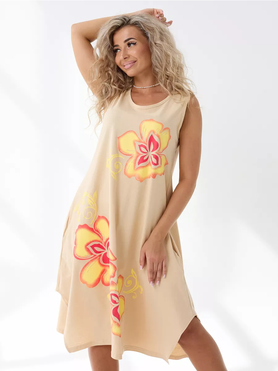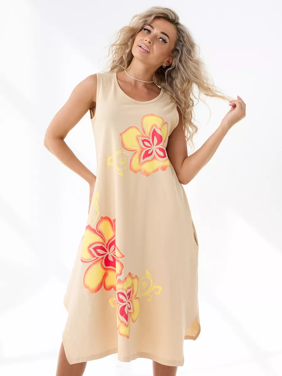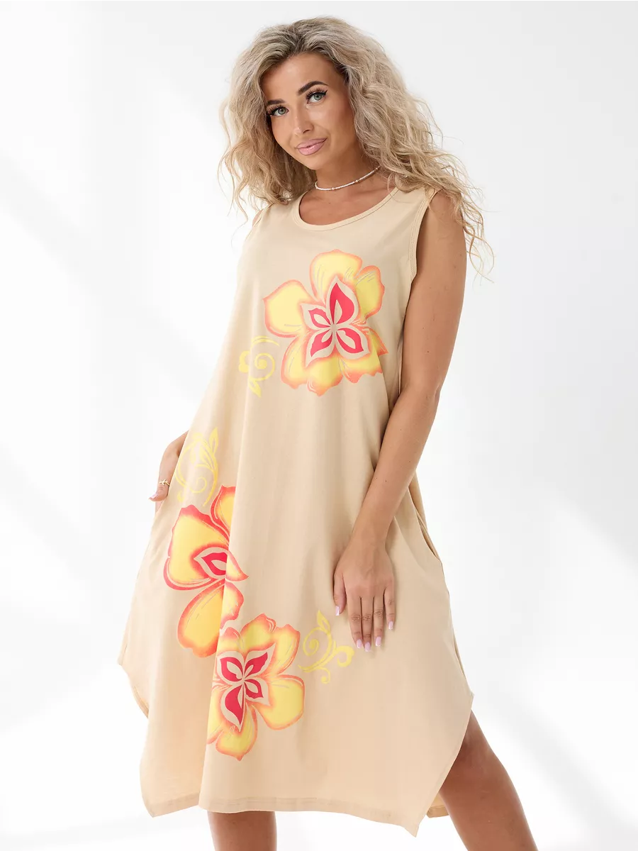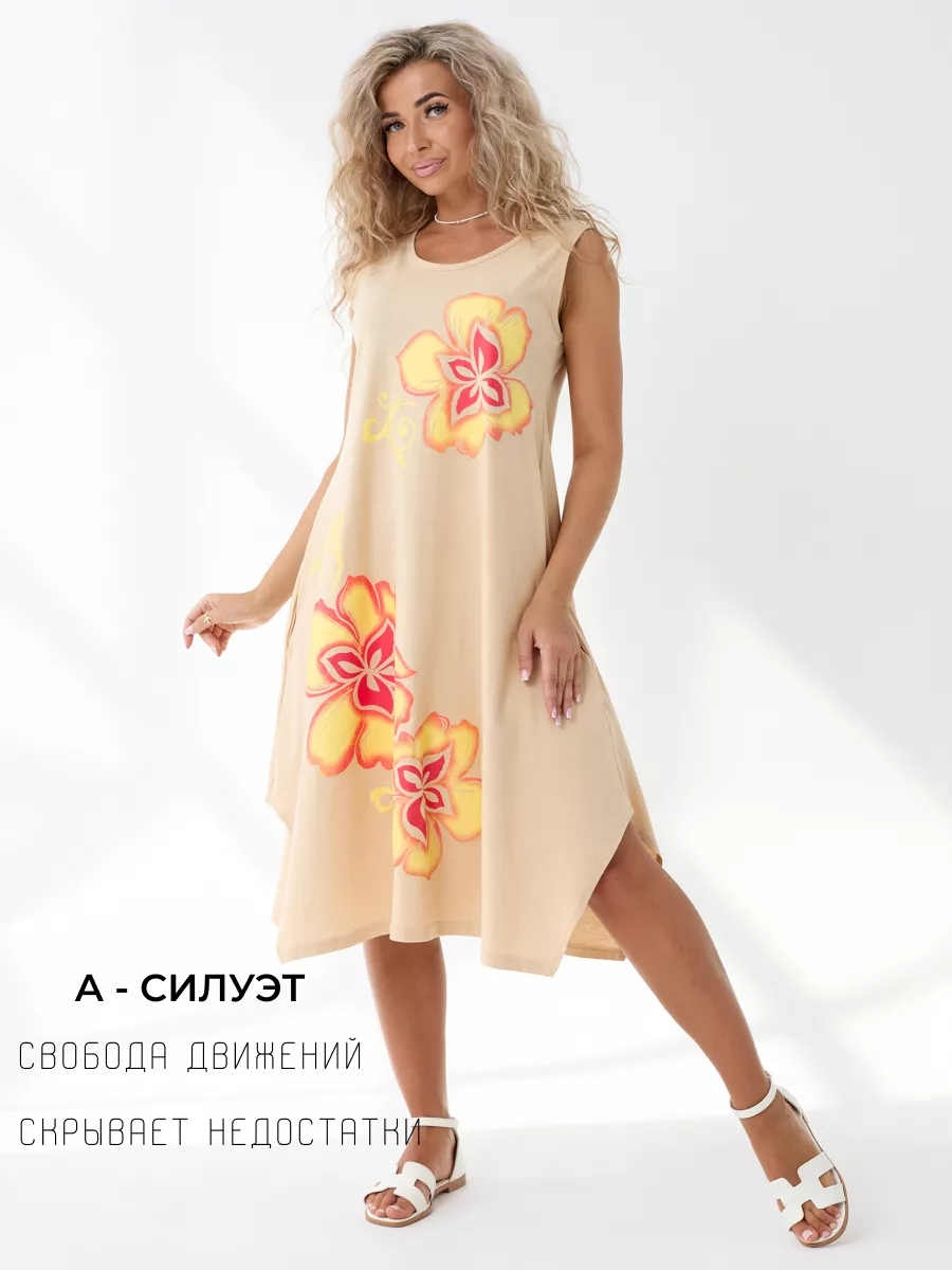 Повседневный длинный сарафан на широких бретелях выполнен из трикотажного полотна , 100% хлопка, комфортный и мягкий на ощупь. Такая ткань называется кулирная гладь, ее так же называют футболочный трикотаж. Подол свободного кроя украшен ассиметричными вырезами. Удобный удлиненный хлопковый легкий сарафан подойдет на лето как летний или как накидка на пляж, а так же его можно носить как домашний нарядный сарафан для отдыха дома. Спокойные тона и длина ниже колена позволят носить его на прогулку и даже в офис. Платье сарафан на широких лямках подходит на разные типы фигур, трапециевидный А-силуэт будет удобен для полных и для беременных девушек. Отличный вариант домашней и повседневной женской одежды, который позволяет скрыть все недостатки и подчеркнуть достоинства. Имеются большие размеры. Мы отшиваем одежду на собственном производстве и гарантируем отличное качество и доступность цен.