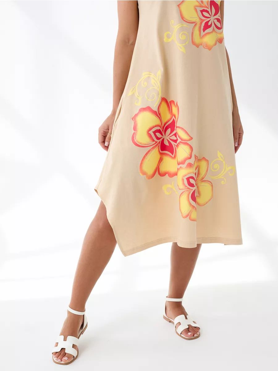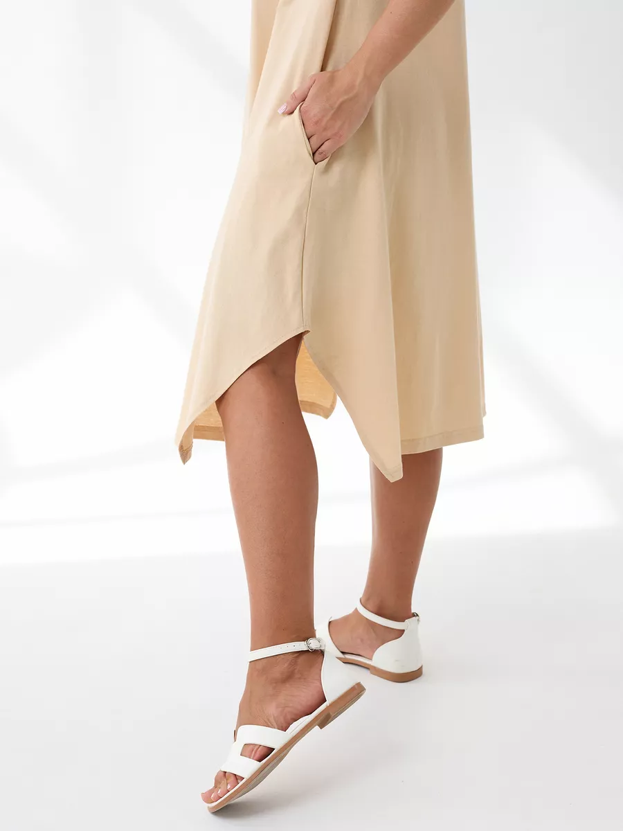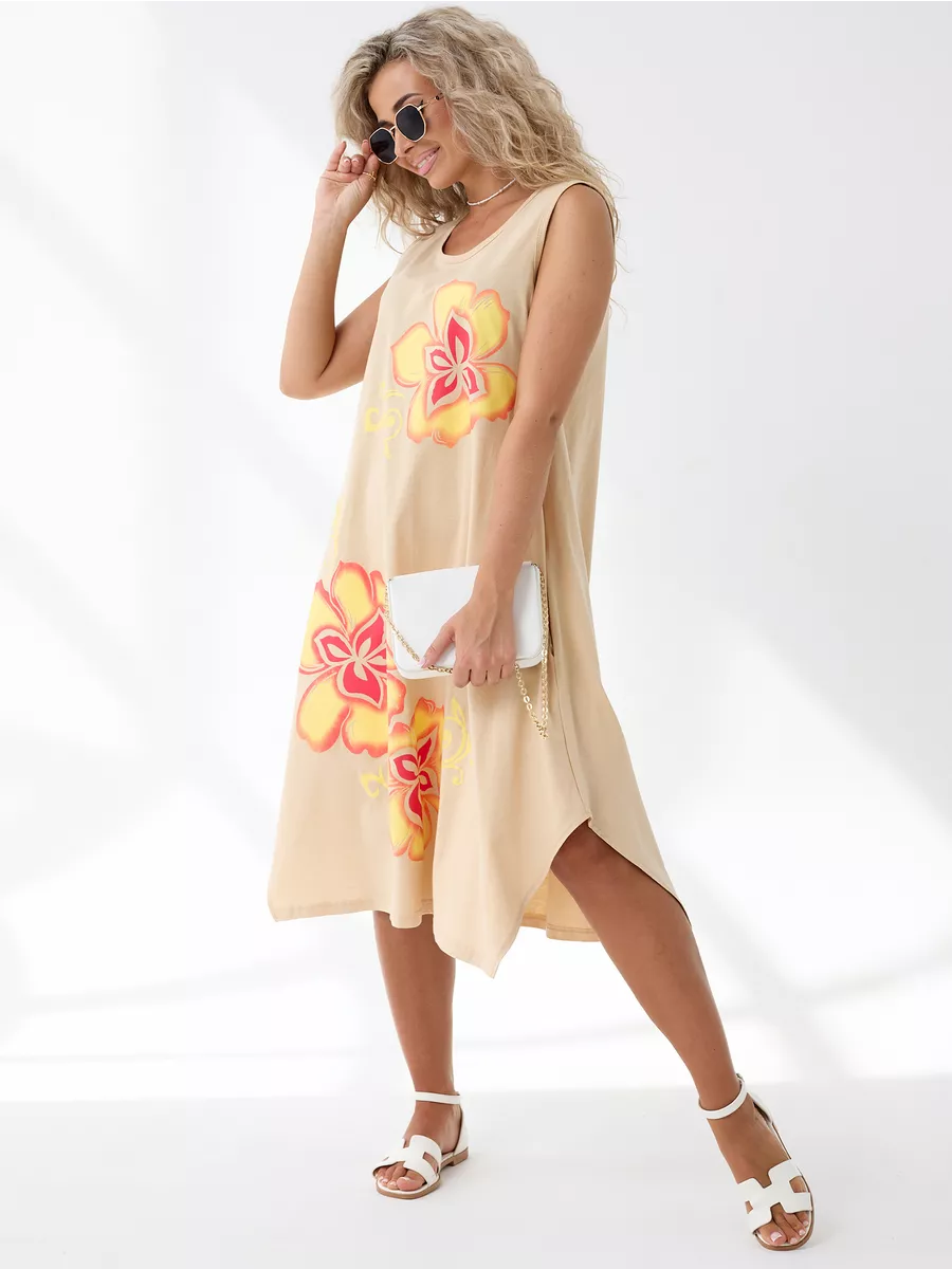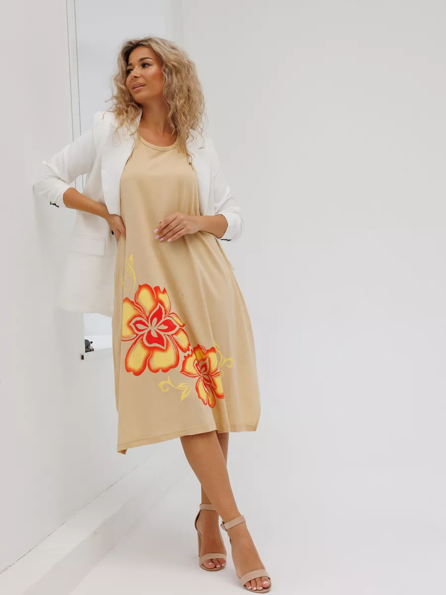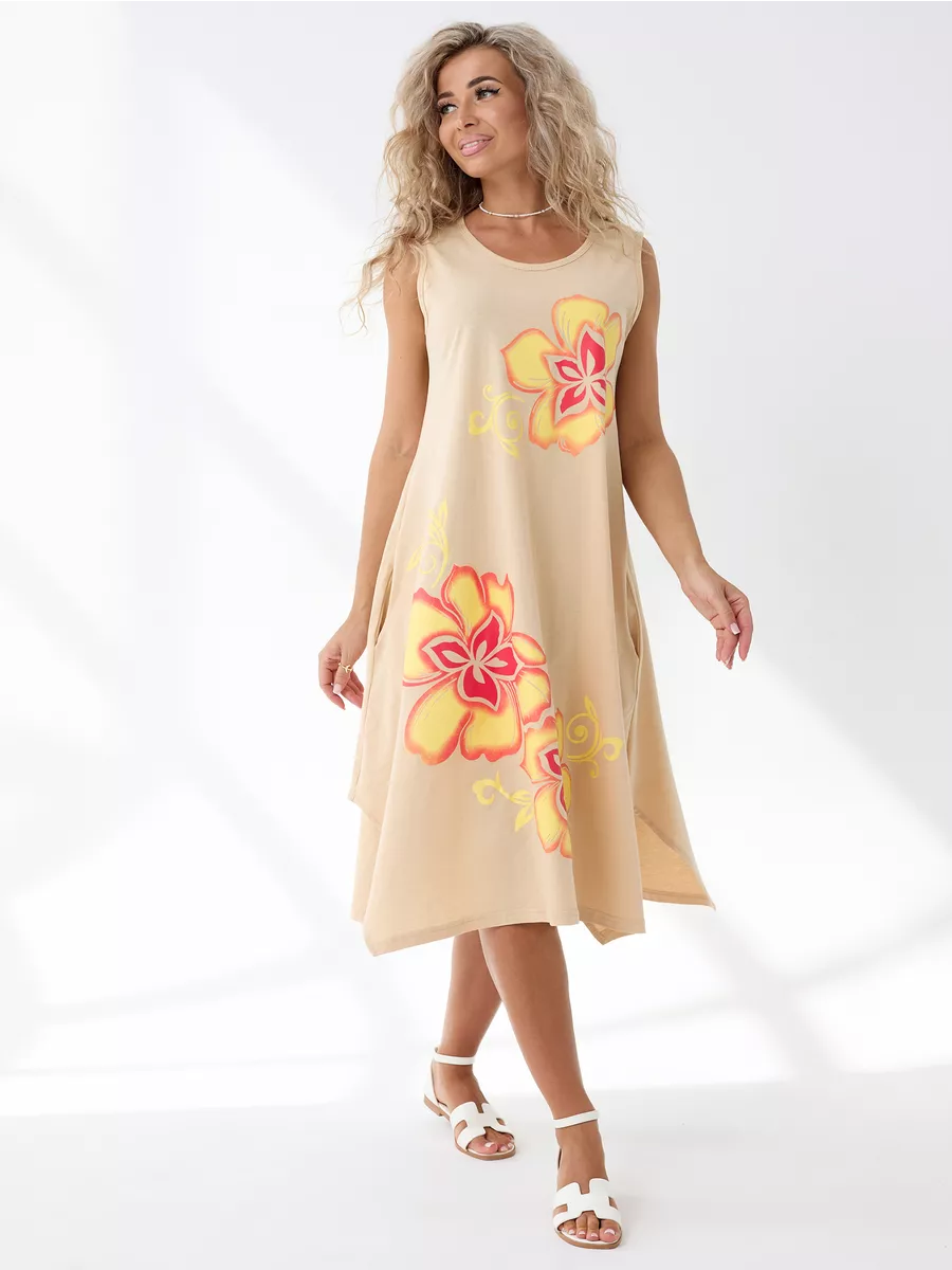 Повседневный длинный сарафан на широких бретелях выполнен из трикотажного полотна , 100% хлопка, комфортный и мягкий на ощупь. Такая ткань называется кулирная гладь, ее так же называют футболочный трикотаж. Подол свободного кроя украшен ассиметричными вырезами. Удобный удлиненный хлопковый легкий сарафан подойдет на лето как летний или как накидка на пляж, а так же его можно носить как домашний нарядный сарафан для отдыха дома. Спокойные тона и длина ниже колена позволят носить его на прогулку и даже в офис. Платье сарафан на широких лямках подходит на разные типы фигур, трапециевидный А-силуэт будет удобен для полных и для беременных девушек. Отличный вариант домашней и повседневной женской одежды, который позволяет скрыть все недостатки и подчеркнуть достоинства. Имеются большие размеры. Мы отшиваем одежду на собственном производстве и гарантируем отличное качество и доступность цен.