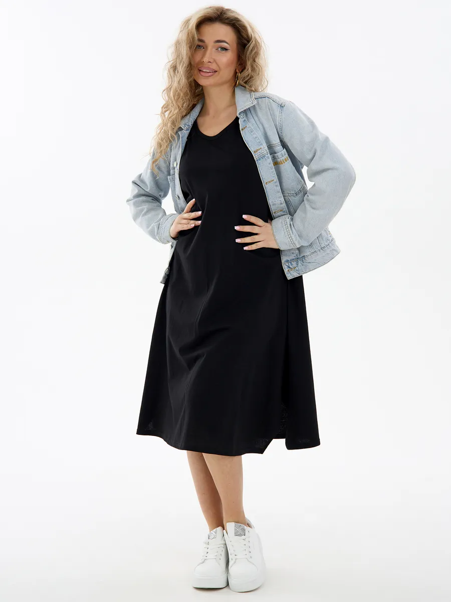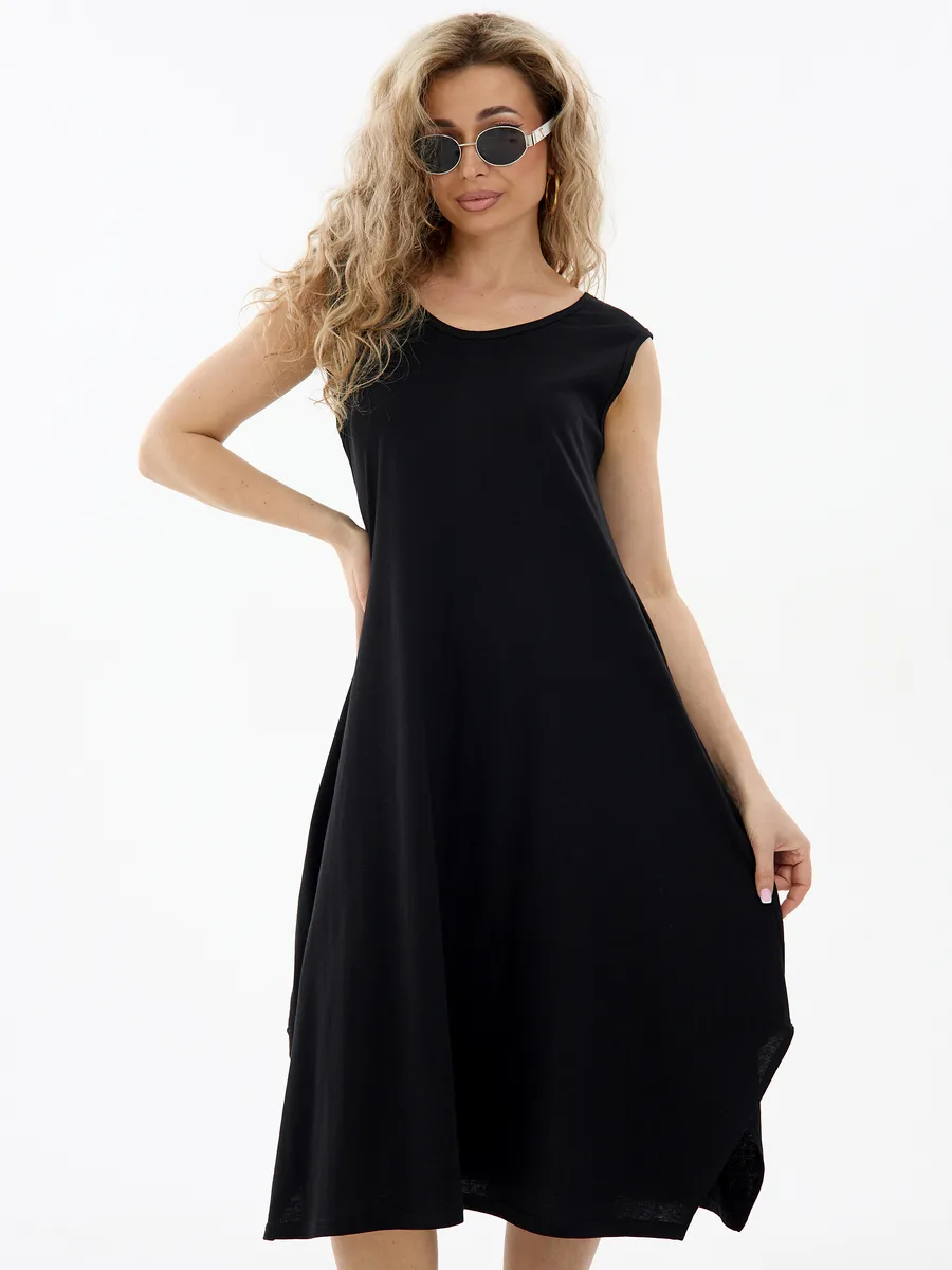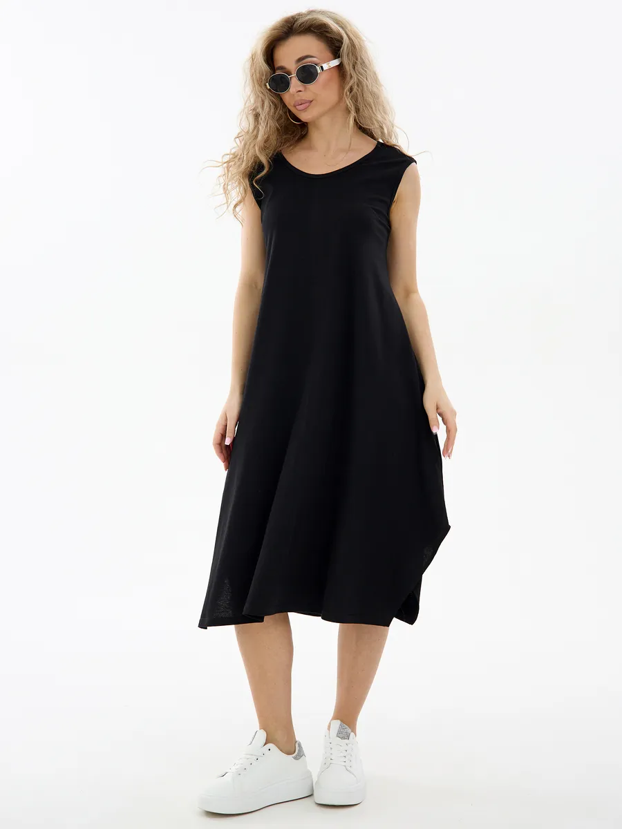 Повседневный длинный сарафан на широких бретелях выполнен из трикотажного полотна , 100% хлопка, комфортный и мягкий на ощупь. Такая ткань называется кулирная гладь, ее так же называют футболочный трикотаж. Подол свободного кроя украшен ассиметричными вырезами. Удобный удлиненный хлопковый легкий сарафан подойдет на лето как летний или как накидка на пляж, а так же его можно носить как домашний нарядный сарафан для отдыха дома. Спокойные тона и длина ниже колена позволят носить его на прогулку и даже в офис. Платье сарафан на широких лямках подходит на разные типы фигур, трапециевидный А-силуэт будет удобен для полных и для беременных девушек. Отличный вариант домашней и повседневной женской одежды, который позволяет скрыть все недостатки и подчеркнуть достоинства. Имеются большие размеры. Мы отшиваем одежду на собственном производстве и гарантируем отличное качество и доступность цен.
