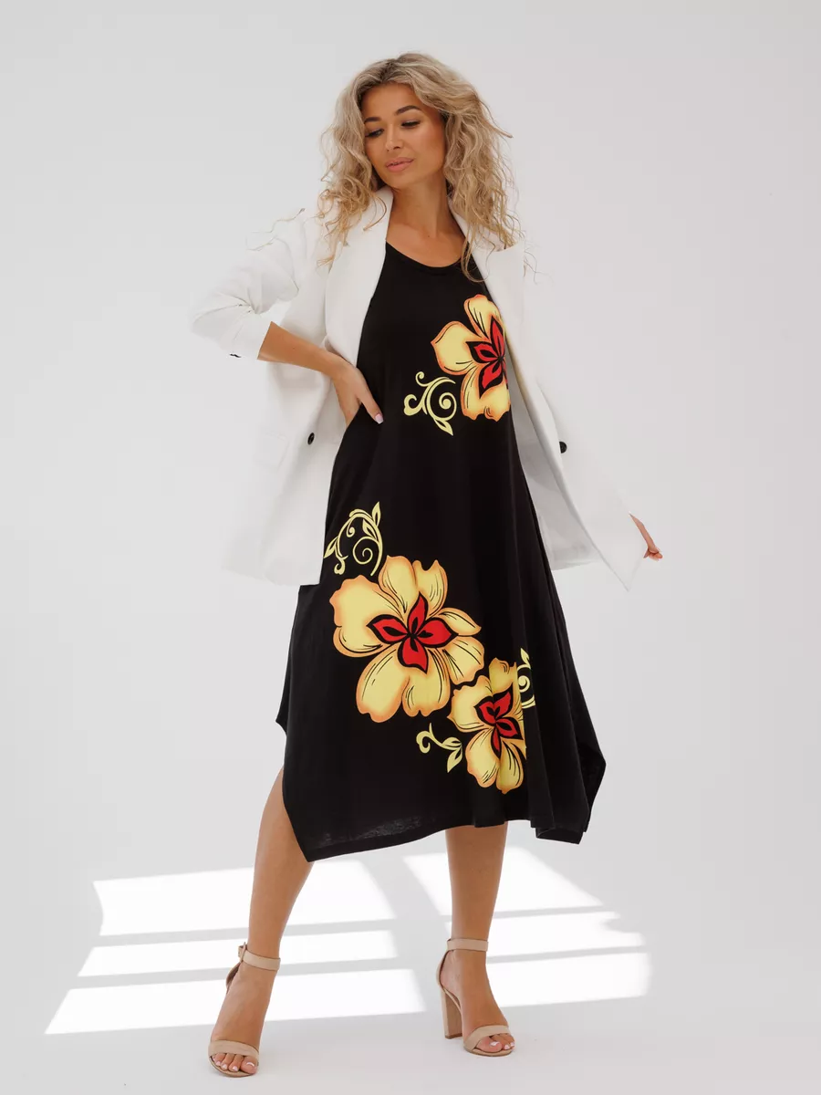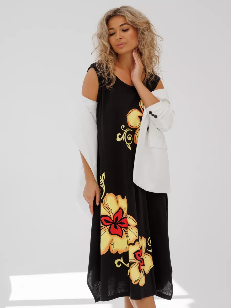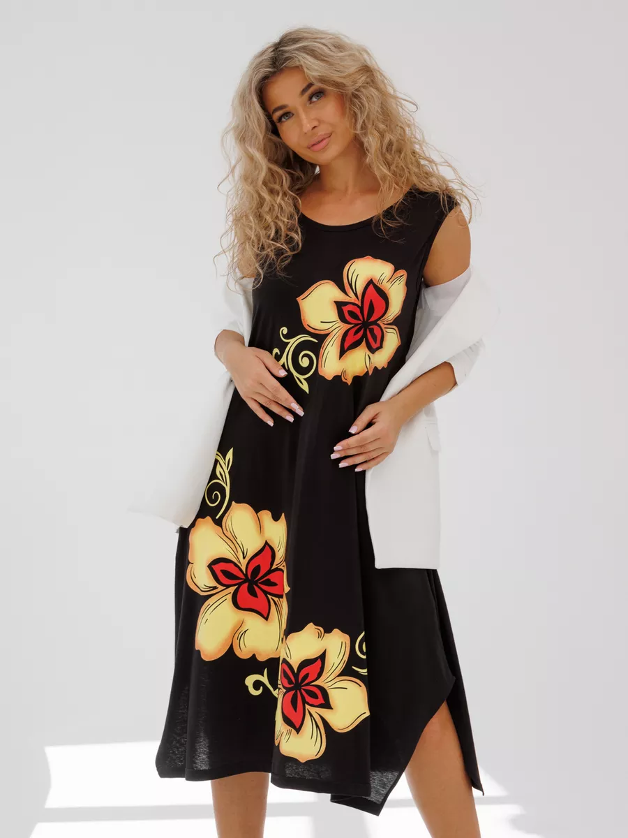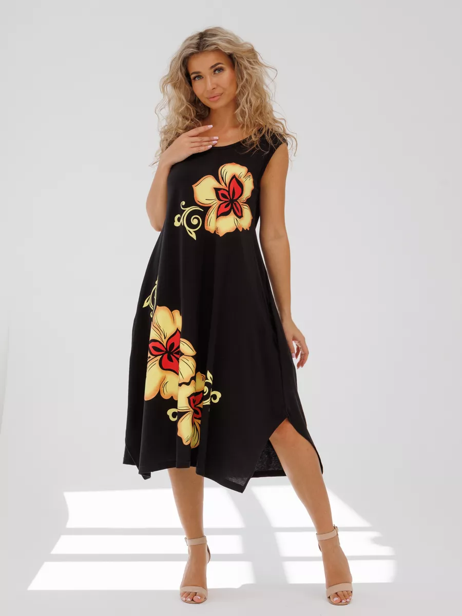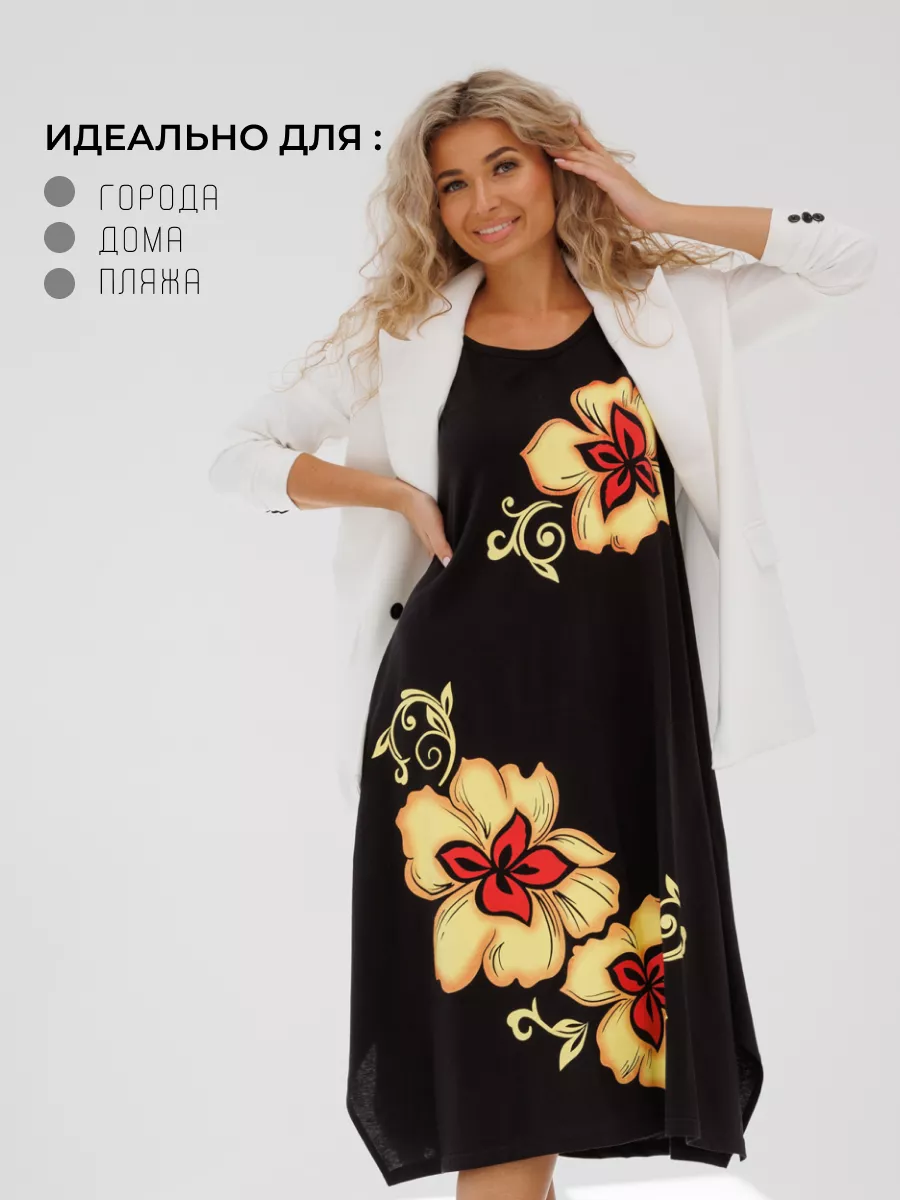 Повседневный длинный сарафан на широких бретелях выполнен из трикотажного полотна , 100% хлопка, комфортный и мягкий на ощупь. Такая ткань называется кулирная гладь, ее так же называют футболочный трикотаж. Подол свободного кроя украшен ассиметричными вырезами. Удобный удлиненный хлопковый легкий сарафан подойдет на лето как летний или как накидка на пляж, а так же его можно носить как домашний нарядный сарафан для отдыха дома. Спокойные тона и длина ниже колена позволят носить его на прогулку и даже в офис. Платье сарафан на широких лямках подходит на разные типы фигур, трапециевидный А-силуэт будет удобен для полных и для беременных девушек. Отличный вариант домашней и повседневной женской одежды, который позволяет скрыть все недостатки и подчеркнуть достоинства. Имеются большие размеры. Мы отшиваем одежду на собственном производстве и гарантируем отличное качество и доступность цен.