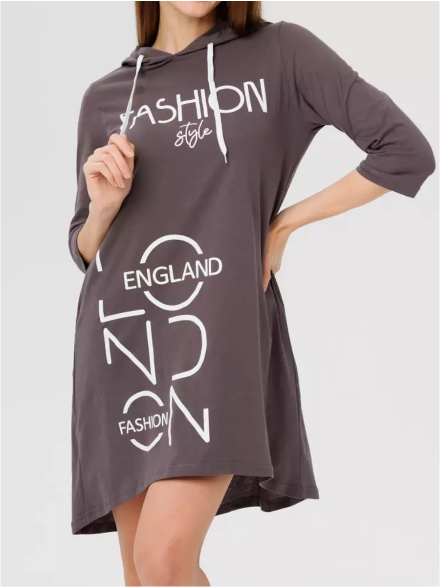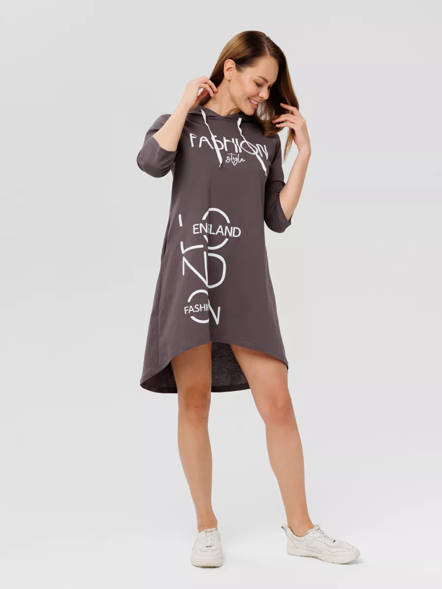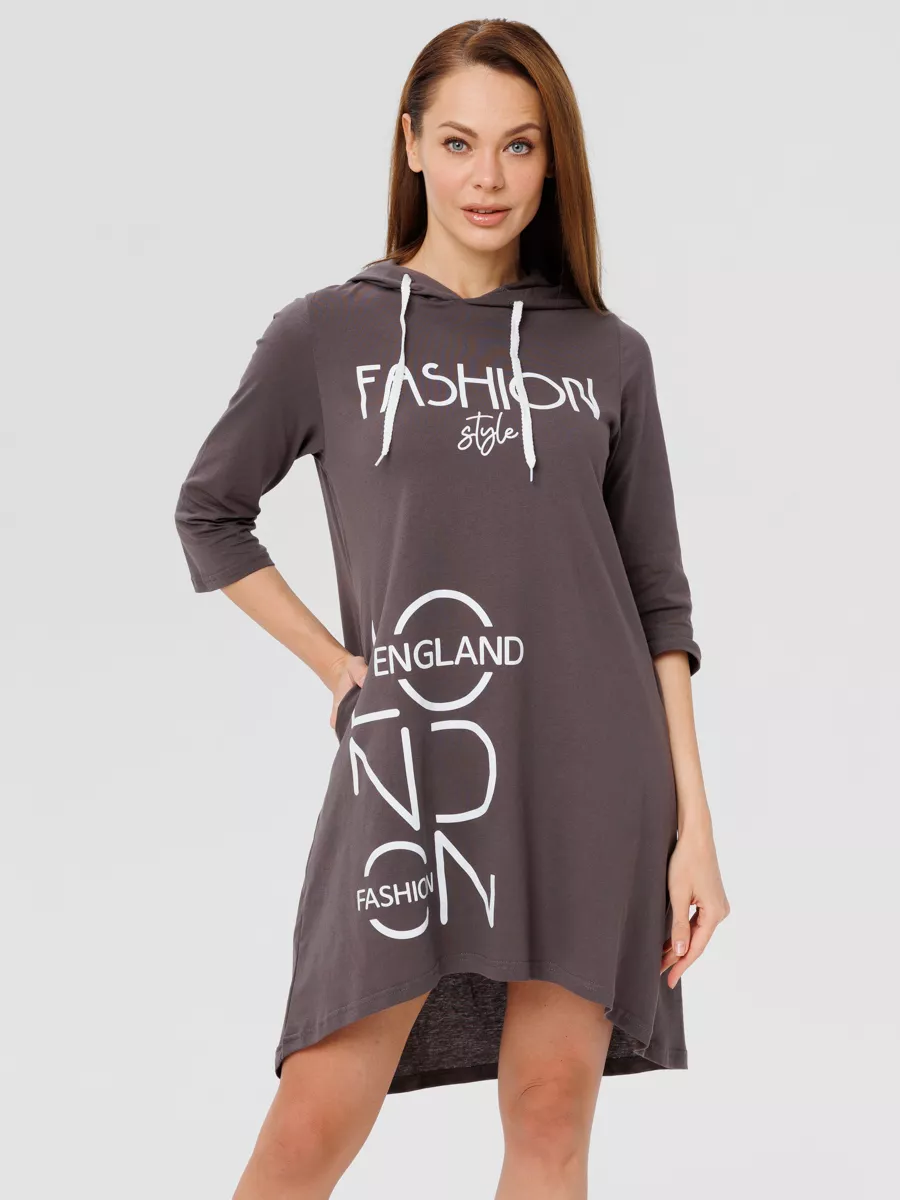 Удлиненная трикотажная туника домашняя женская и на каждый день. Широкий размерный ряд, есть большие размеры. Выполнена из 100 % хлопка, кулирной глади - футболочный трикотаж. Благодаря длине рукава и длине самого платья , длинная туника подойдет для носки и зимой и осенью и будет удобна как теплая. Удобная стильная хлопковая и с ярким принтом, она подойдет как домашняя и в качестве повседневной. Нейтральный цвет позволить носить ее в качестве офисной и в качестве блузки и туники (для офиса). Будет уместна она и как летняя на повседневную носку и как туника пляжная для отдыха на море и в качестве пляжной накидки на купальник. Длинные рукава и капюшон защитят вас от солнца. Туника , прикрывающая бедра, отлична сама по себе, либо ее можно носить дополнив образ лосинами, велосипедками или джинсами. Имеет проверенный крой, свободный и не облегающий фигуру, не ограничивает движений, что важно для беременных или полных женщин. А – силуэт трапеция с ассиметричной длиной не акцентирует линию талии, расклешенный фасон с высокой посадкой сбалансирует фигуру с широкими плечами, скроет лишние сантиметры в бедрах. Благодаря свободному покрою такая одежда для дома и на каждый день хорошо смотрится на разных типах женской фигуры - подойдет и для большой груди, и пышных бедер.