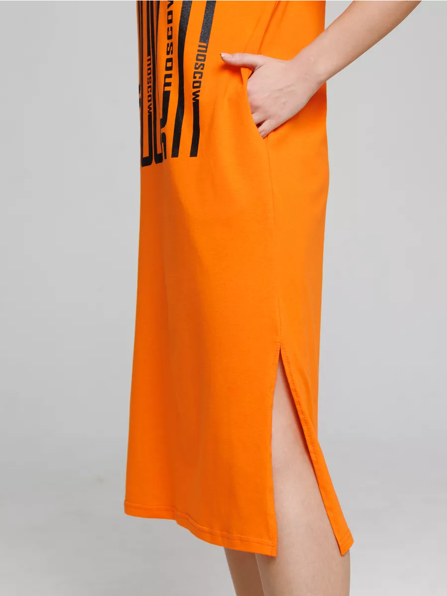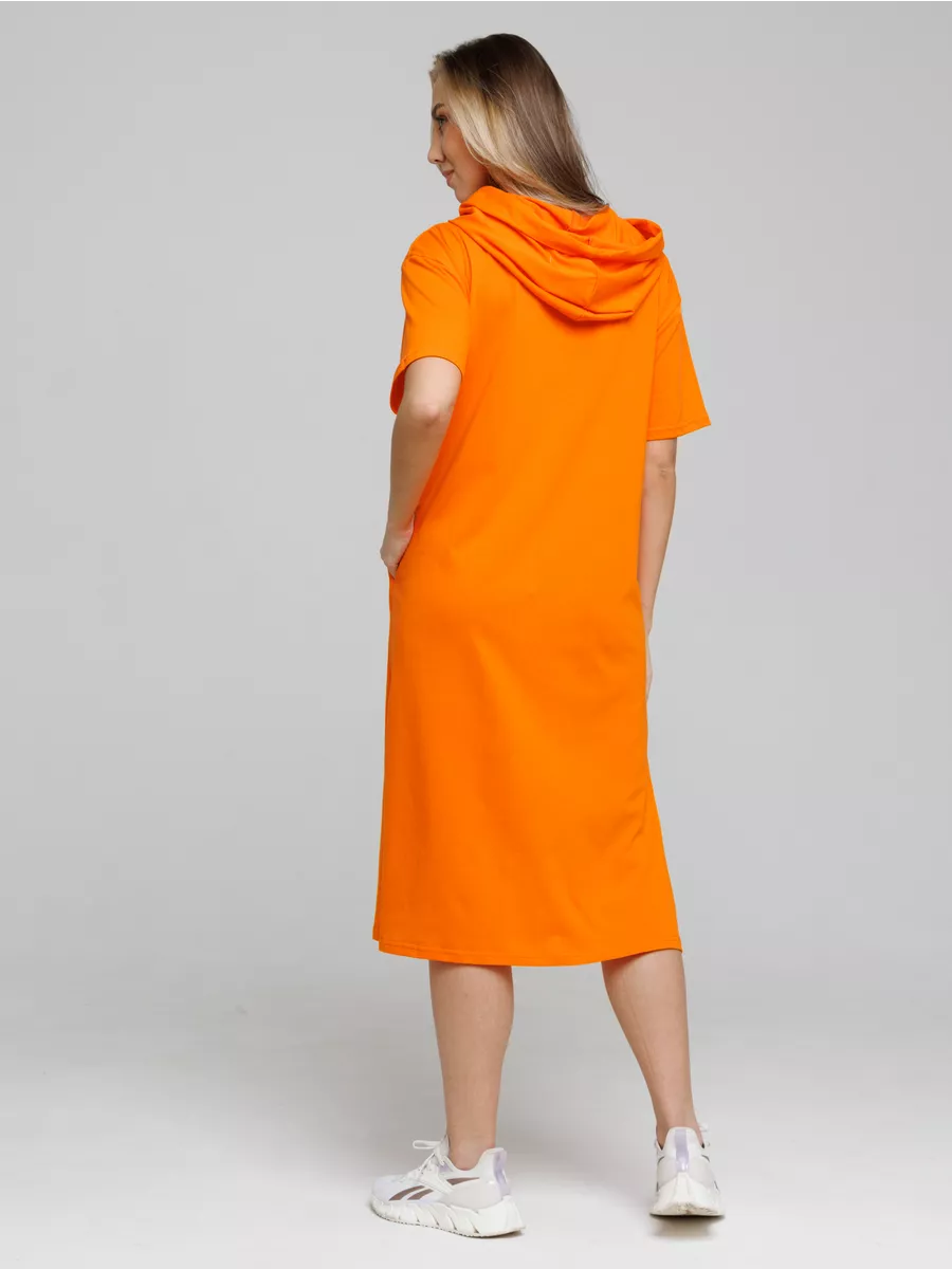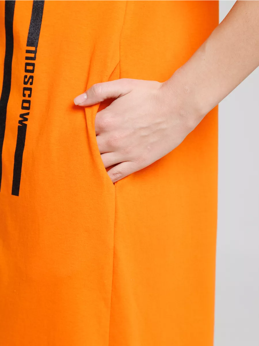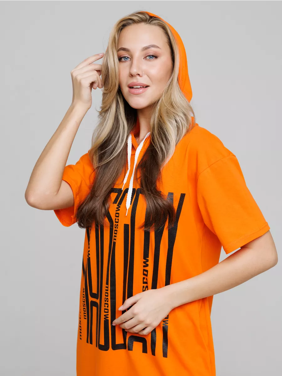 Удлиненная яркая оранжевая трикотажная туника домашняя женская и на каждый день. Широкий размерный ряд, где есть большие размеры. Выполнена из 100 % хлопка, кулирной глади - футболочный трикотаж. Благодаря длине рукава и длине самого платья, длинная туника подойдет для носки и зимой и осенью, будет удобна как теплая. Удобная стильная хлопковая туника подойдет, как домашняя туника платье и в качестве повседневной на каждый день. Нейтральный принт позволить носить ее в качестве офисной туники ( для офиса ). Будет уместна она и как летняя на повседневную носку и как туника пляжная для отдыха на море и в качестве пляжной накидки на купальник. Капюшон защитит Вас от солнца. Туника, прикрывающая ноги, имеет проверенный крой, свободный и не облегающий фигуру, не ограничивает движений, что важно для беременных или полных женщин. Длинная туника с разрезами по бокам имеет прямой фасон с высокой посадкой, который скроет лишние сантиметры. Благодаря свободному покрою такая одежда для дома и на каждый день хорошо смотрится на разных типах женской фигуры - подойдет и для большой груди, и пышных бедер. Оранжевыйоттенок добавляет яркости в вашобраз,апринтомразбавляет ежедневную рутину чем-то оригинальным иинтересным.Туникаскапюшономсоздает уютное ощущениетепла,особенно восенниеилизимниедни, делая еепопулярнойсредимодницвсех возрастов.Рукавомудобнойдлинывы можете наслаждатьсясвободойдвижениябез стеснений. Платье-туника - отличный подарок для девушек и женщин!