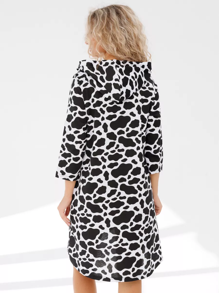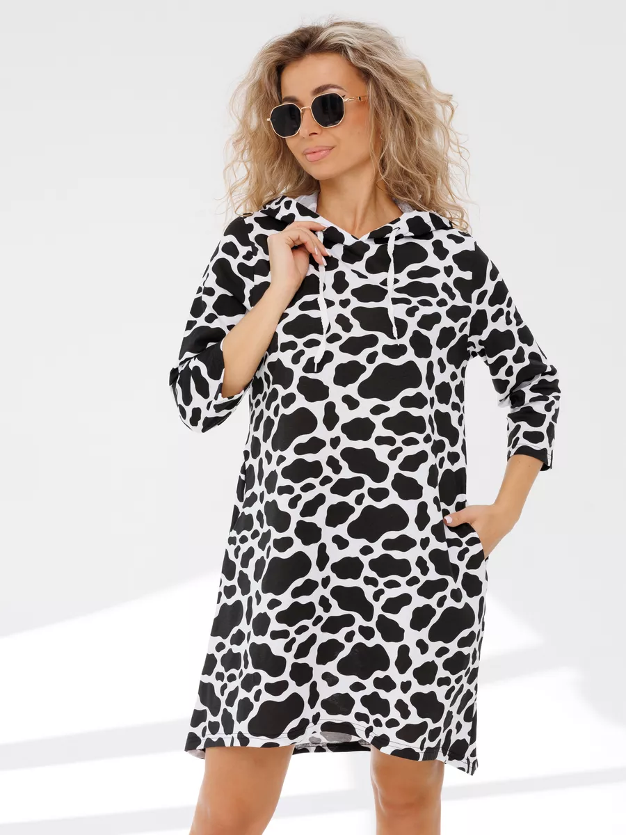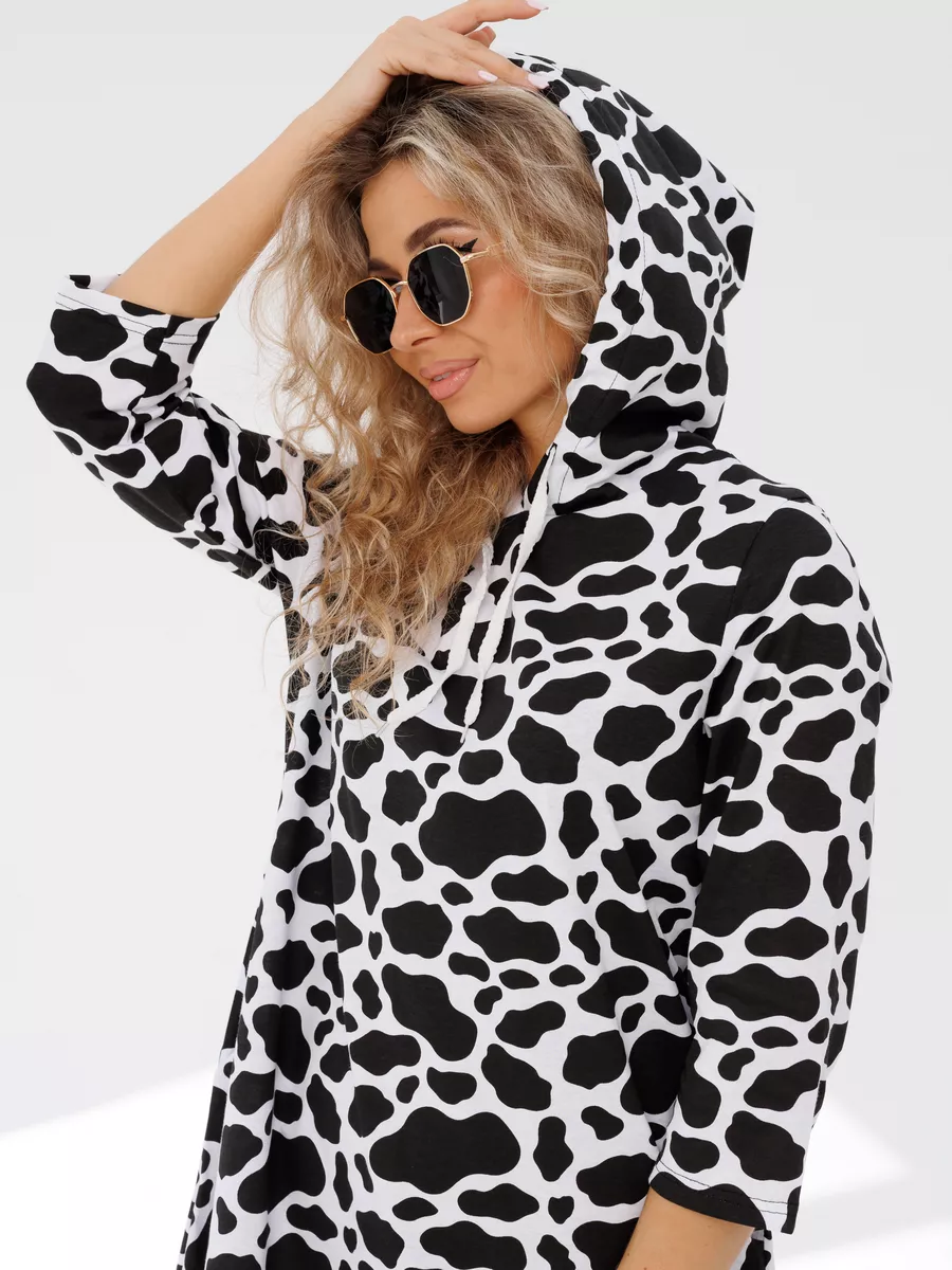 Удлиненная трикотажная туника домашняя женская и на каждый день. Широкий размерный ряд, есть большие размеры. Выполнена из 100 % хлопка, кулирной глади - футболочный трикотаж. Благодаря длине рукава и длине самого платья , длинная туника подойдет для носки и зимой и осенью и будет удобна как теплая. Удобная стильная хлопковая и с ярким принтом, она подойдет как домашняя и в качестве повседневной. Нейтральный цвет позволить носить ее в качестве офисной и в качестве блузки и туники (для офиса). Будет уместна она и как летняя на повседневную носку и как туника пляжная для отдыха на море и в качестве пляжной накидки на купальник. Длинные рукава и капюшон защитят вас от солнца. Туника , прикрывающая бедра, отлична сама по себе, либо ее можно носить дополнив образ лосинами, велосипедками или джинсами. Имеет проверенный крой, свободный и не облегающий фигуру, не ограничивает движений, что важно для беременных или полных женщин. А – силуэт трапеция с ассиметричной длиной не акцентирует линию талии, расклешенный фасон с высокой посадкой сбалансирует фигуру с широкими плечами, скроет лишние сантиметры в бедрах. Благодаря свободному покрою такая одежда для дома и на каждый день хорошо смотрится на разных типах женской фигуры - подойдет и для большой груди, и пышных бедер.