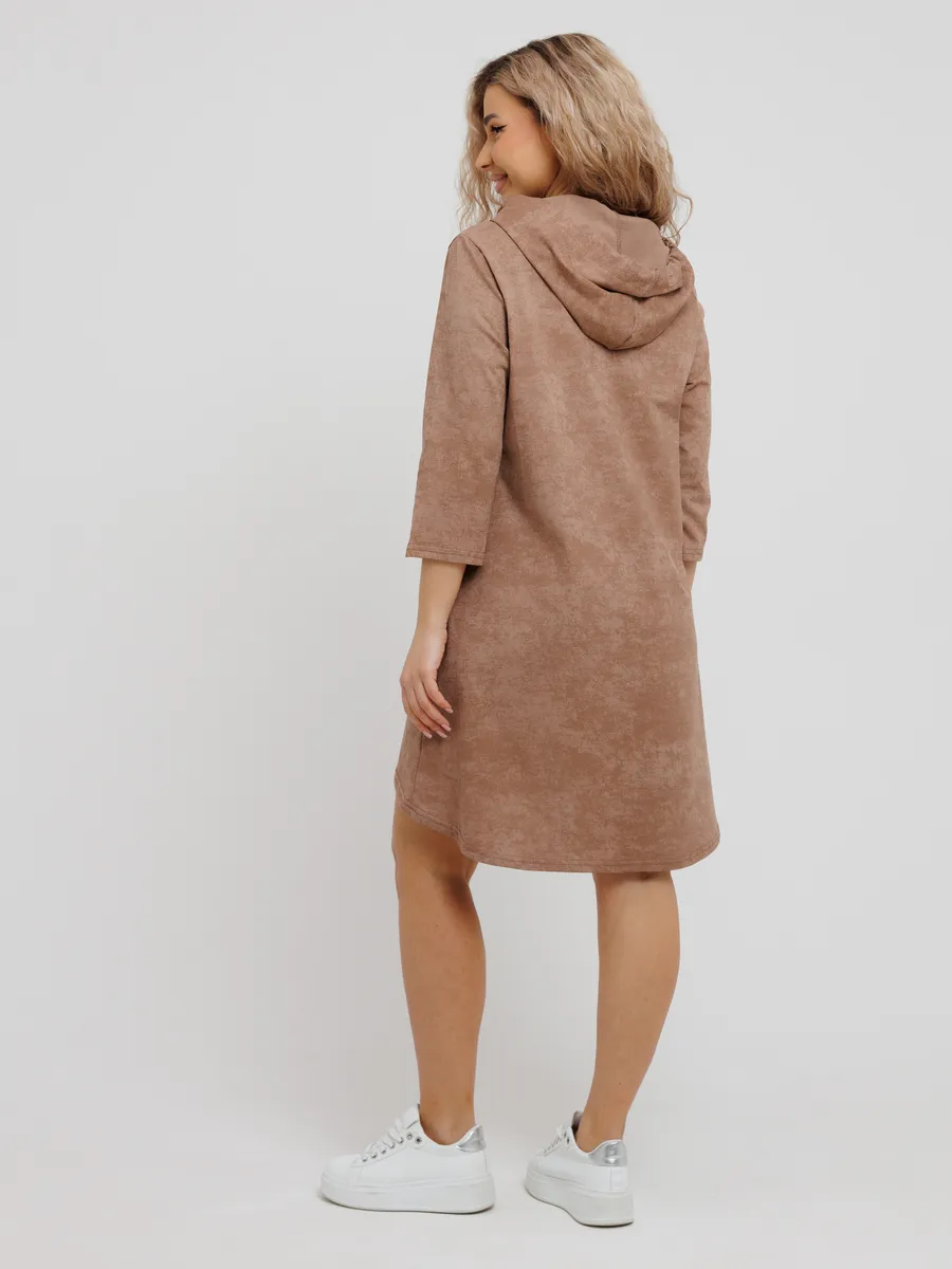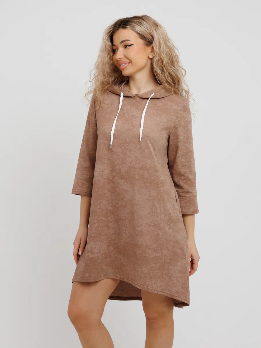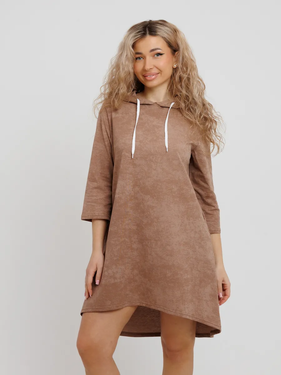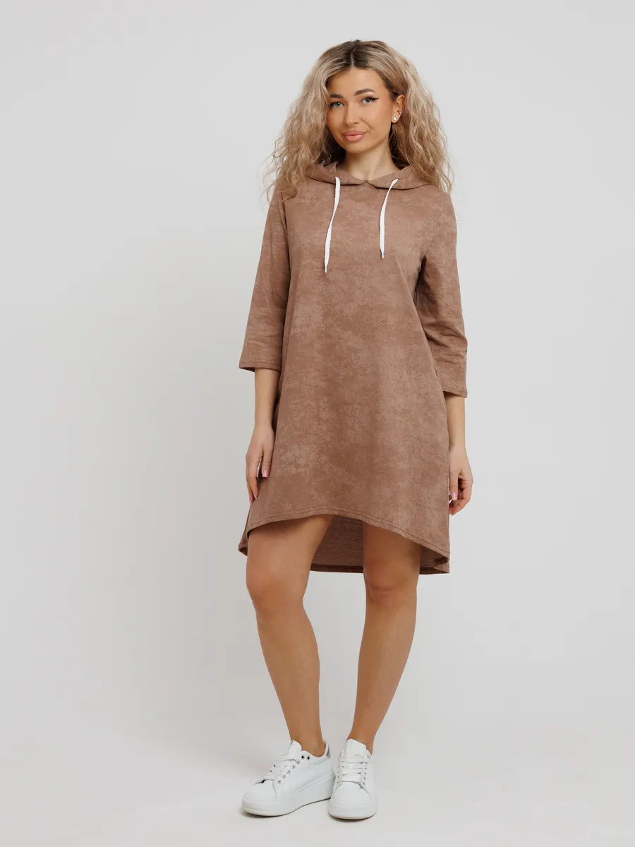 Удлиненная черная трикотажная туника домашняя женская и на каждый день. Широкий размерный ряд, есть большие размеры. Выполнена из 100 % хлопка, кулирной глади - футболочный трикотаж. Благодаря длине рукава и длине самого платья , длинная туника подойдет для носки и зимой и осенью, будет удобна как теплая туника . Удобная стильная хлопковая туника подойдет как домашняя туника и в качестве повседневной на каждый день. Нейтральный принт позволить носить ее в качестве офисной. Будет уместна она и как летняя на повседневную носку и как туника пляжная для отдыха на море и в качестве пляжной накидки на купальник. Длинные рукава и капюшон защитят вас от солнца. Туника , прикрывающая бедра, отлична как платье туника, либо ее можно носить дополнив образ лосинами, велосипедками или джинсами. Кофта имеет проверенный крой, свободный и не облегающий фигуру, не ограничивает движений, что важно для беременных или полных женщин. А – силуэт трапеция с ассиметричной длиной не акцентирует линию талии в худи, расклешенный фасон с высокой посадкой сбалансирует фигуру с широкими плечами, скроет лишние сантиметры в бедрах. Благодаря свободному покрою такая одежда для дома и на каждый день хорошо смотрится на разных типах женской фигуры - подойдет и для большой груди, и пышных бедер.