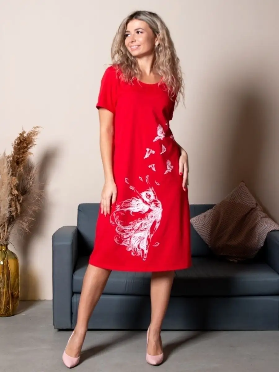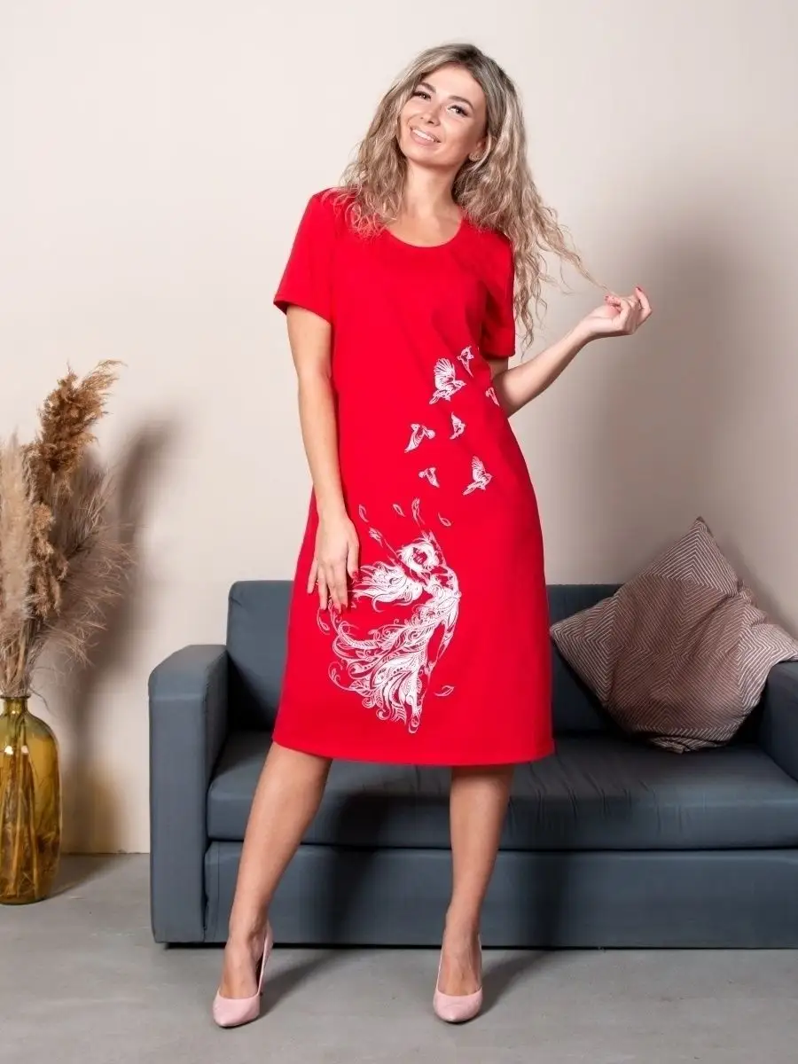 В фотогалерее вы можете ознакомиться с размерной сеткой и рекомендациями по уходу, в ней указаны параметры туники, не тела!Удлиненная трикотажная туника с принтом и коротким рукавом, есть большие размеры. Выполнена из 100% хлопка. Удобная хлопковая туника платье подойдет вам в прохладное время года как повседневная домашняя нарядная для дома и как летняя на каждый день, а так же на лето для пляжа, в качестве пляжной накидки на купальник. Проверенный крой, свободный и не облегающий фигуру, не ограничивает движений, что немаловажно для беременных или полных женщин. А - силуэт с длиной миди, чуть выше колена интересно смотрится. Высокая свободная посадка не акцентирует линию талии, расклешенный фасон сбалансирует фигуру с широкими плечами, скроет лишние сантиметры в бедрах. Благодаря свободному покрою такая одежда для дома и на выход хорошо смотрится на разных типах женской фигуры - подойдет и для большой груди, и пышных бедер. В наличии есть туники больших размеров, силуэт будет удобен для полных и для беременных девушек. Платье-туника - это отличный подарок для девушек и женщин! Тысячи женщин уже по достоинству оценили их! Материал туники - кулирная гладь, футболочный трикотаж. Туника довольно свободного фасона. Длина изделия по спинке зависит от размера от 103 до 110 см, более подробная информация есть в вопросах к товару. Если у вас возникли сложности с подбором размера, напишите в вопросы, мы вам обязательно поможем.