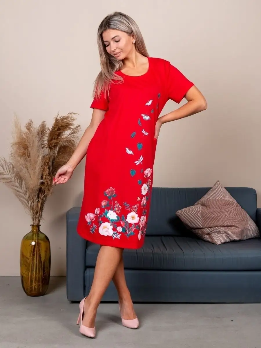 В фотогалерее вы можете ознакомиться с размерной сеткой и рекомендациями по уходу, в ней указаны параметры туники, не тела!Удлиненная трикотажная туника с принтом и коротким рукавом, есть большие размеры. Выполнена из 100% хлопка. Удобная хлопковая туника платье подойдет вам в прохладное время года как повседневная домашняя нарядная для дома и как летняя на каждый день, а так же на лето для пляжа, в качестве пляжной накидки на купальник. Проверенный крой, свободный и не облегающий фигуру, не ограничивает движений, что немаловажно для беременных или полных женщин. А - силуэт с длиной миди, чуть выше колена интересно смотрится. Высокая свободная посадка не акцентирует линию талии, расклешенный фасон сбалансирует фигуру с широкими плечами, скроет лишние сантиметры в бедрах. Благодаря свободному покрою такая одежда для дома и на выход хорошо смотрится на разных типах женской фигуры - подойдет и для большой груди, и пышных бедер. В наличии есть туники больших размеров, силуэт будет удобен для полных и для беременных девушек. Платье-туника - это отличный подарок для девушек и женщин! Тысячи женщин уже по достоинству оценили их! Материал туники - кулирная гладь, футболочный трикотаж. Туника довольно свободного фасона. Длина изделия по спинке зависит от размера от 103 до 110 см, более подробная информация есть в вопросах к товару. Если у вас возникли сложности с подбором размера, напишите в вопросы, мы вам обязательно поможем.