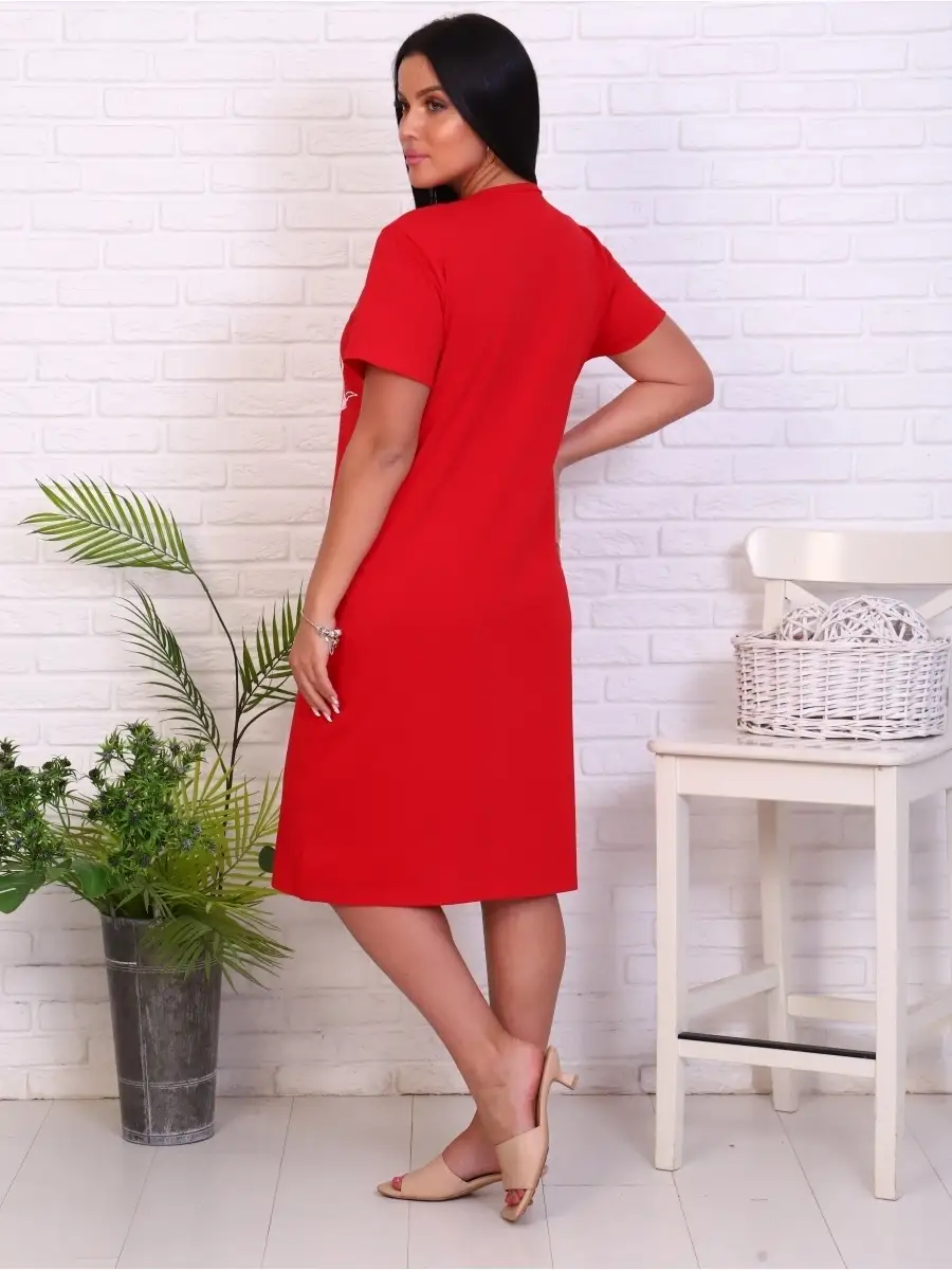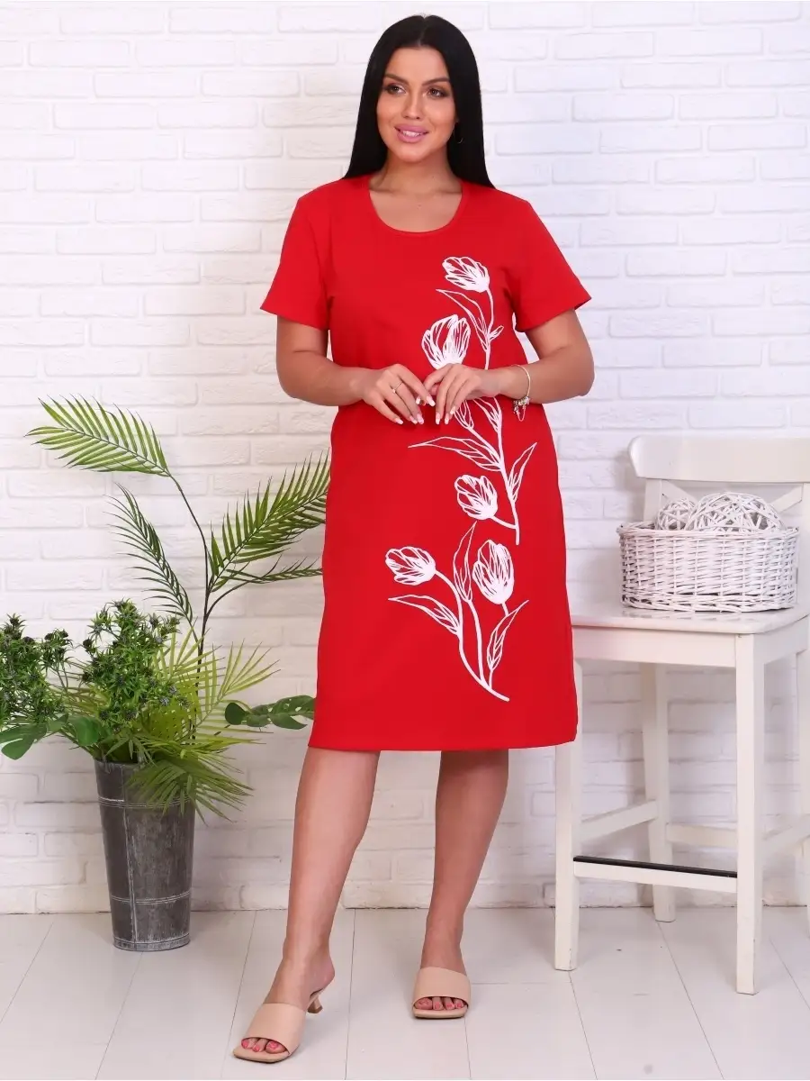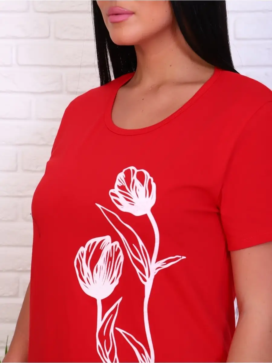Длинная женская туника с коротким рукавом и интересным контрастным принтом. Трикотажная туника выполнена из 100% хлопка, размерная сетка включает в себя большие размеры. Удобная удлиненная хлопковая туника свободного покроя подойдет на разные типы фигур. Это - отличный вариант домашней одежды, который позволяет скрыть все недостатки фигуры и подчеркнуть достоинства. Благодаря свободному крою будет удобна для беременных. Она подойдет как нарядная домашняя туника для дома в прохладное время года и как повседневная летняя туника на прогулку в теплое время. Женское свободное платье - отличный подарок для всех девушек и женщин! Мы отшиваем домашнюю и повседневную одежду для Вас на собственном производстве и гарантируем отличное качество и доступность цен для Вас!