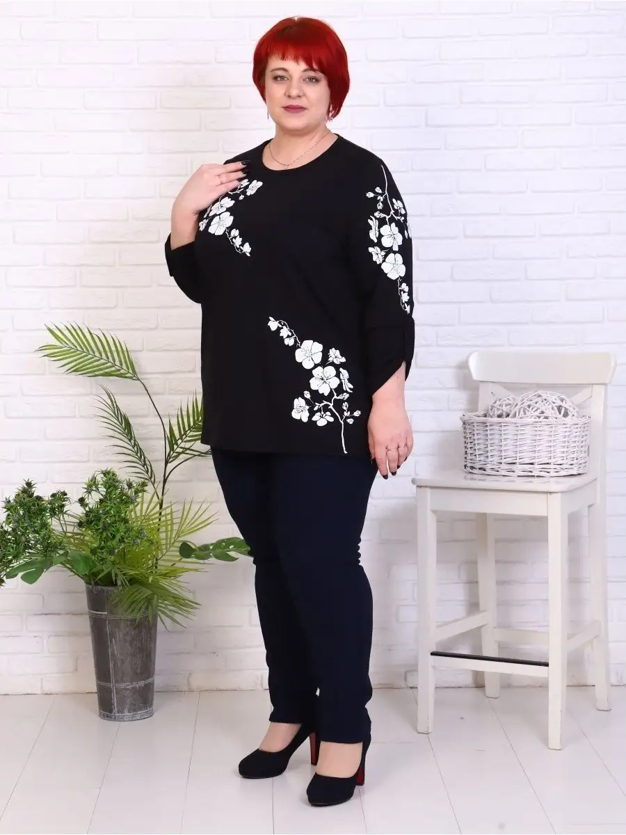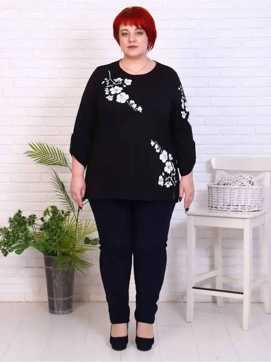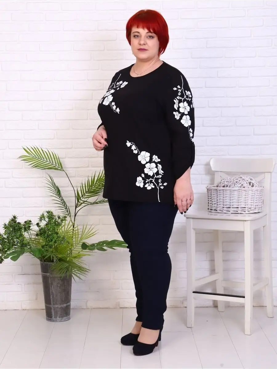 Пересорт на складе, приходит либо туника, либо платье. Без возможности выбора. ЛИКВИДАЦИЯ ОСТАТКОВ НИЖЕ СЕБЕСТОИМОСТИ! Туника женская нарядная больших размеров с патами и принтом, имеющая презентабельный внешний вид. Оригинальным решением данной модели, являются драпирующийся длинный рукав. Трикотажная туника с длинным рукавом комфортная и мягкая на ощупь, выполнена из 100% хлопка . Туника (лонгслив, джемпер) с классическим проверенным свободно облегающим кроем, не ограничивает движений, будет хорошо смотреться на разных типах женской фигуры. Подойдет как под брюки или джинсы, так и под юбку. Удобная длина, которая прикрывает бедра. Повседневная туника на выход и на каждый день - отличный вариант одежды, который позволяет скрыть все недостатки фигуры и подчеркнуть достоинства. Она подойдет для дома как нарядная домашняя туника в прохладное время года , для офиса и работы и как повседневная летняя туника в теплый сезон. Домашняя и повседневная одежда больших размеров в магазине AliceTeks37!