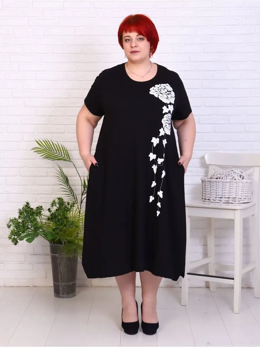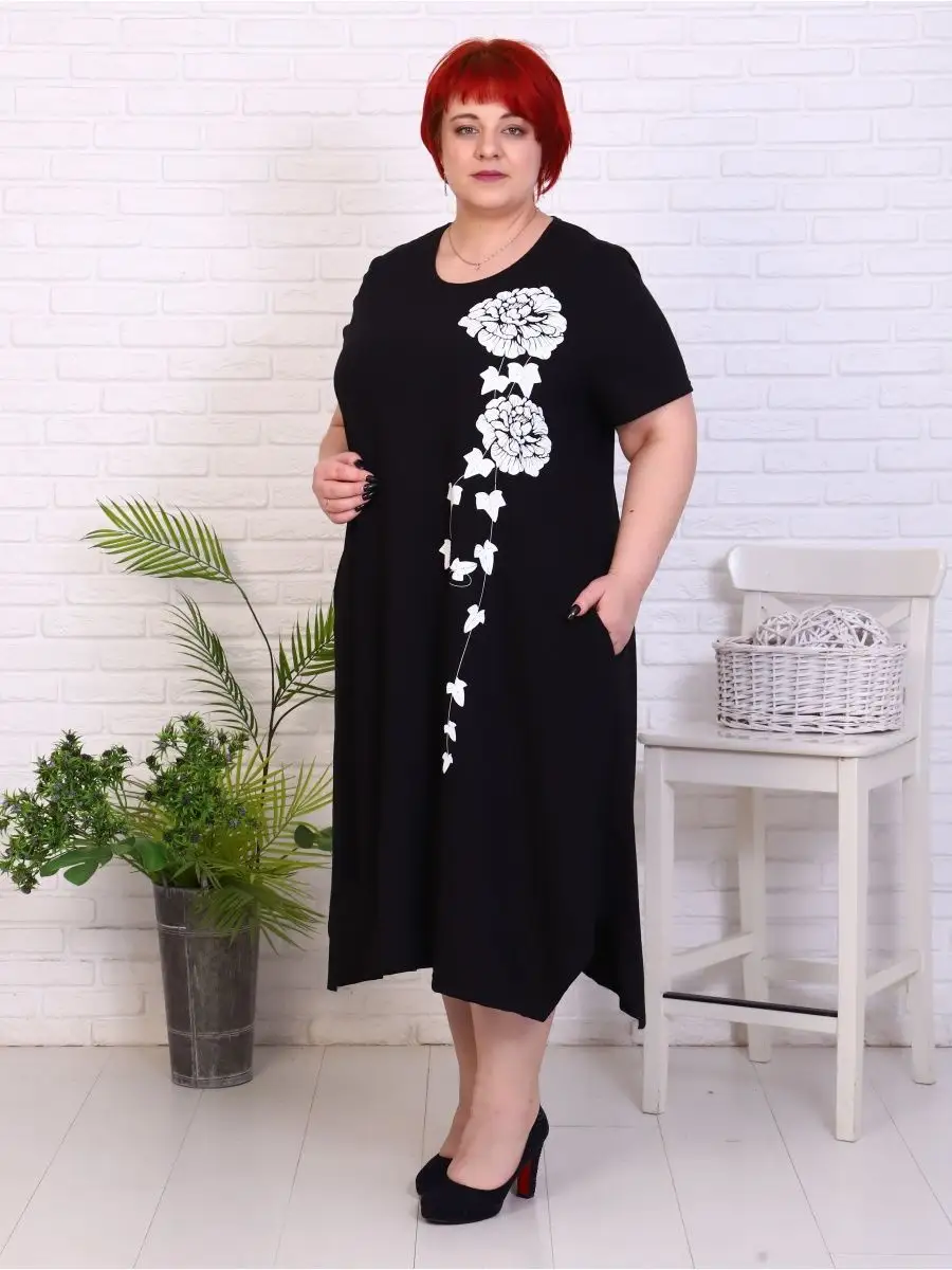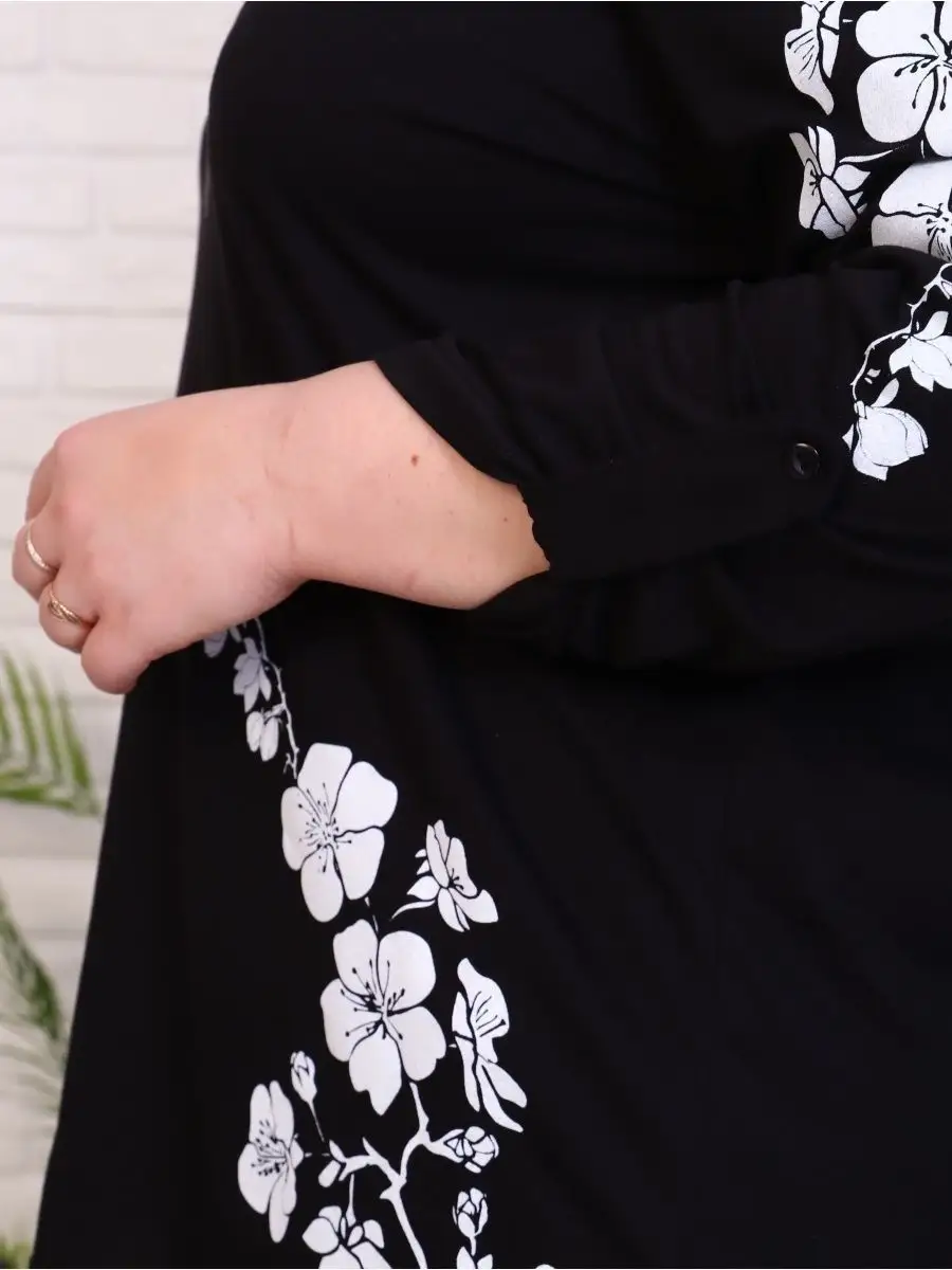 Пересорт на складе, приходит либо туника, либо платье. Без возможности выбора. ЛИКВИДАЦИЯ ОСТАТКОВ НИЖЕ СЕБЕСТОИМОСТИ! Туника женская нарядная больших размеров с патами и принтом, имеющая презентабельный внешний вид. Оригинальным решением данной модели, являются драпирующийся длинный рукав. Трикотажная туника с длинным рукавом комфортная и мягкая на ощупь, выполнена из 100% хлопка . Туника (лонгслив, джемпер) с классическим проверенным свободно облегающим кроем, не ограничивает движений, будет хорошо смотреться на разных типах женской фигуры. Подойдет как под брюки или джинсы, так и под юбку. Удобная длина, которая прикрывает бедра. Повседневная туника на выход и на каждый день - отличный вариант одежды, который позволяет скрыть все недостатки фигуры и подчеркнуть достоинства. Она подойдет для дома как нарядная домашняя туника в прохладное время года , для офиса и работы и как повседневная летняя туника в теплый сезон. Домашняя и повседневная одежда больших размеров в магазине AliceTeks37!